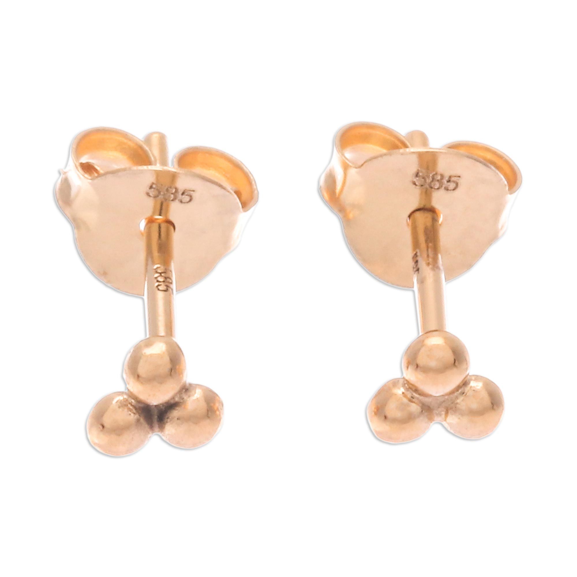 14k Gold Stud Earrings with Gold-Plated Clasp from Thailand, 'Dots of Wealth'