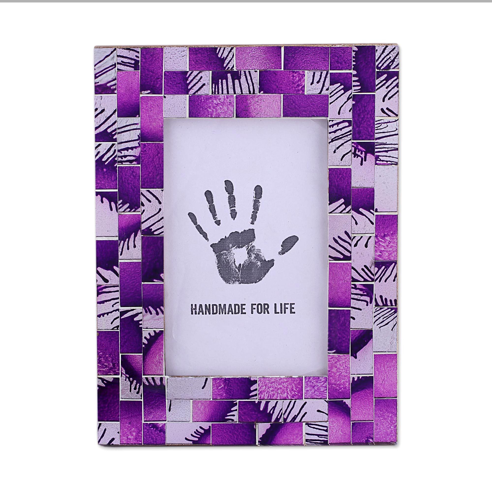 4x6 Rectangular Glass Mosaic Purple Photo Frame from India, 'Purple Impression'