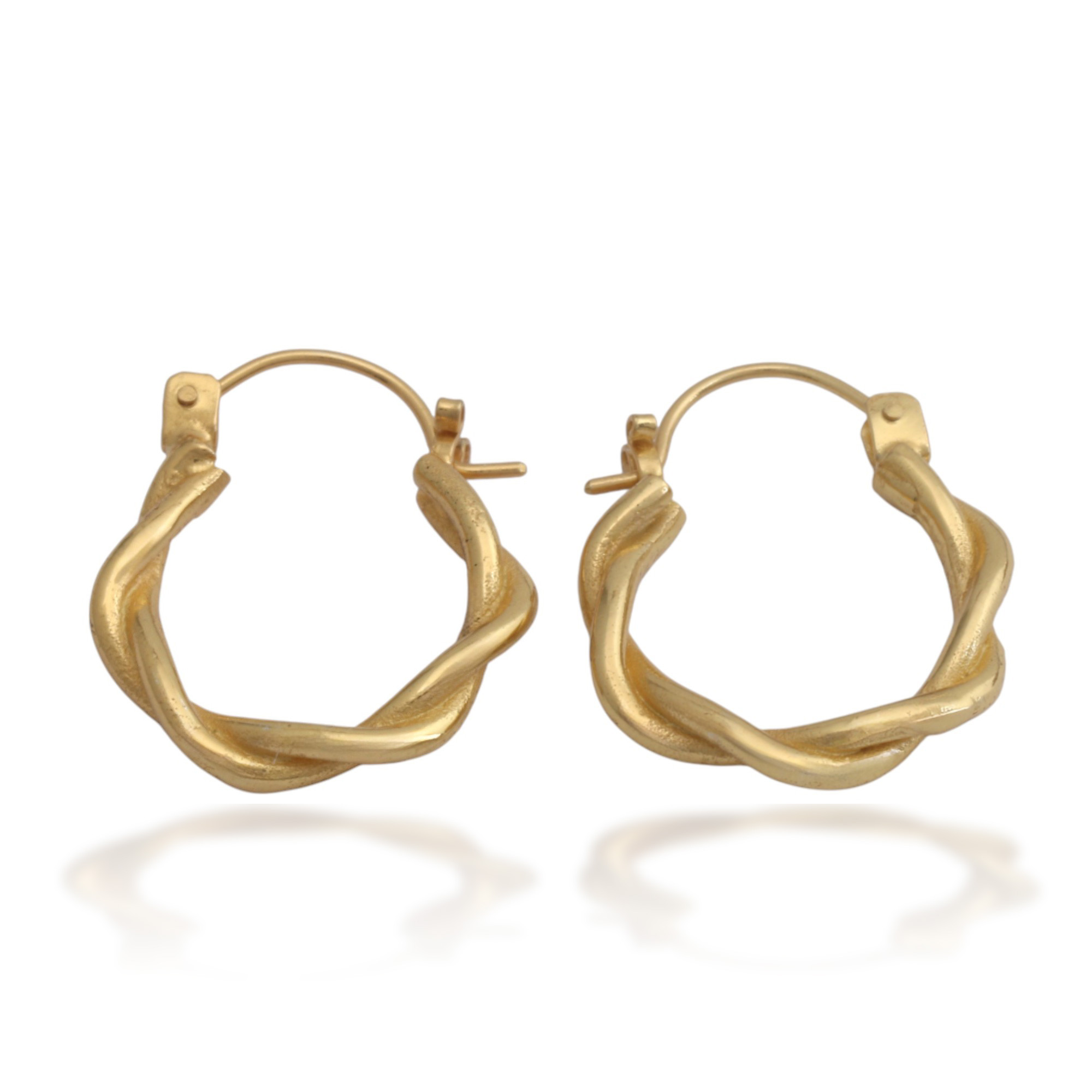 Twisted lines embrace each other to crown your days. Bali's Dewa Nyoman Oka shows talent in the delicate details that compose these hoop earrings, whose semi-abstract vibe seems to imitate a nimbus of 18k gold-plated brass.