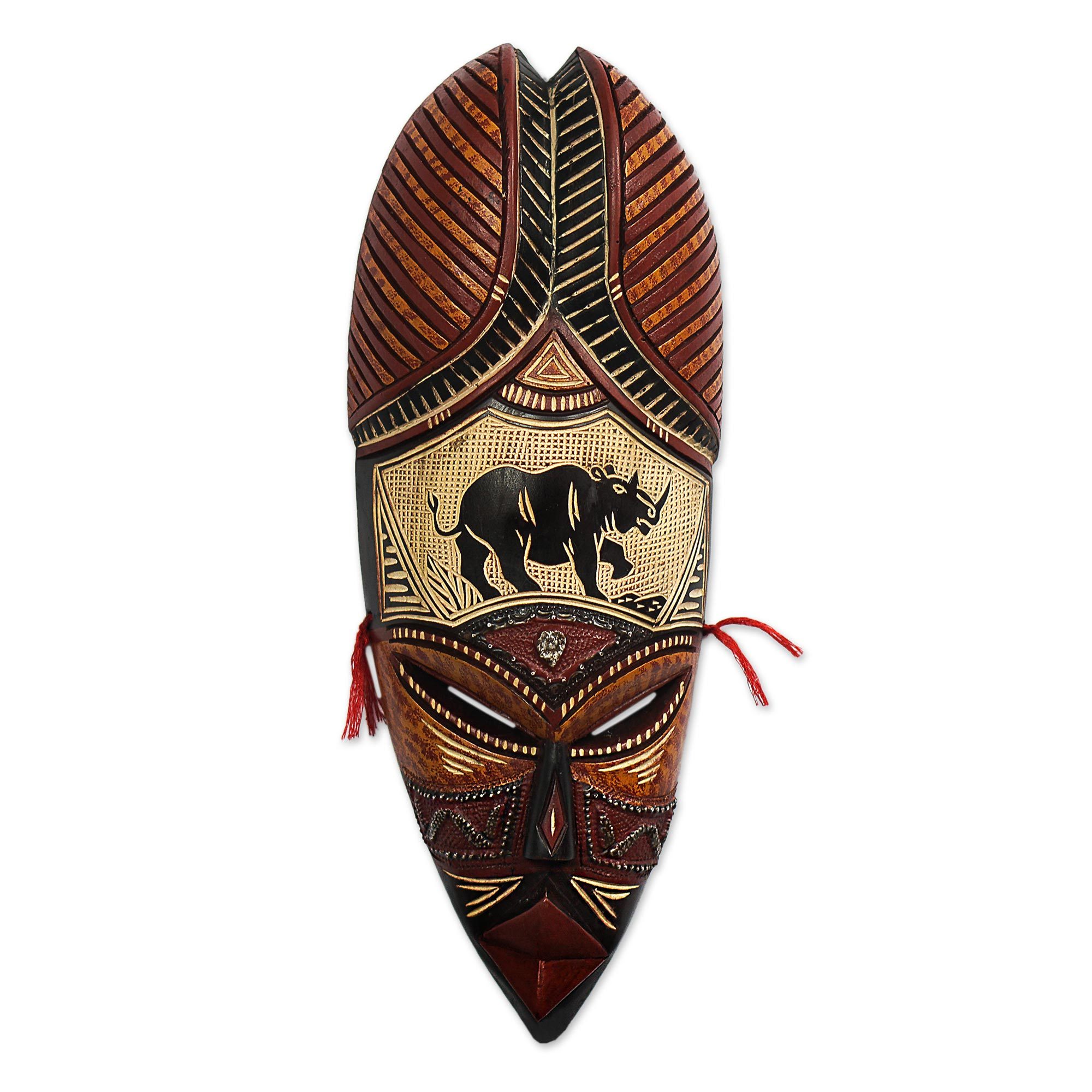 Aluminum and Brass Plated African Mask, 'Asempa'