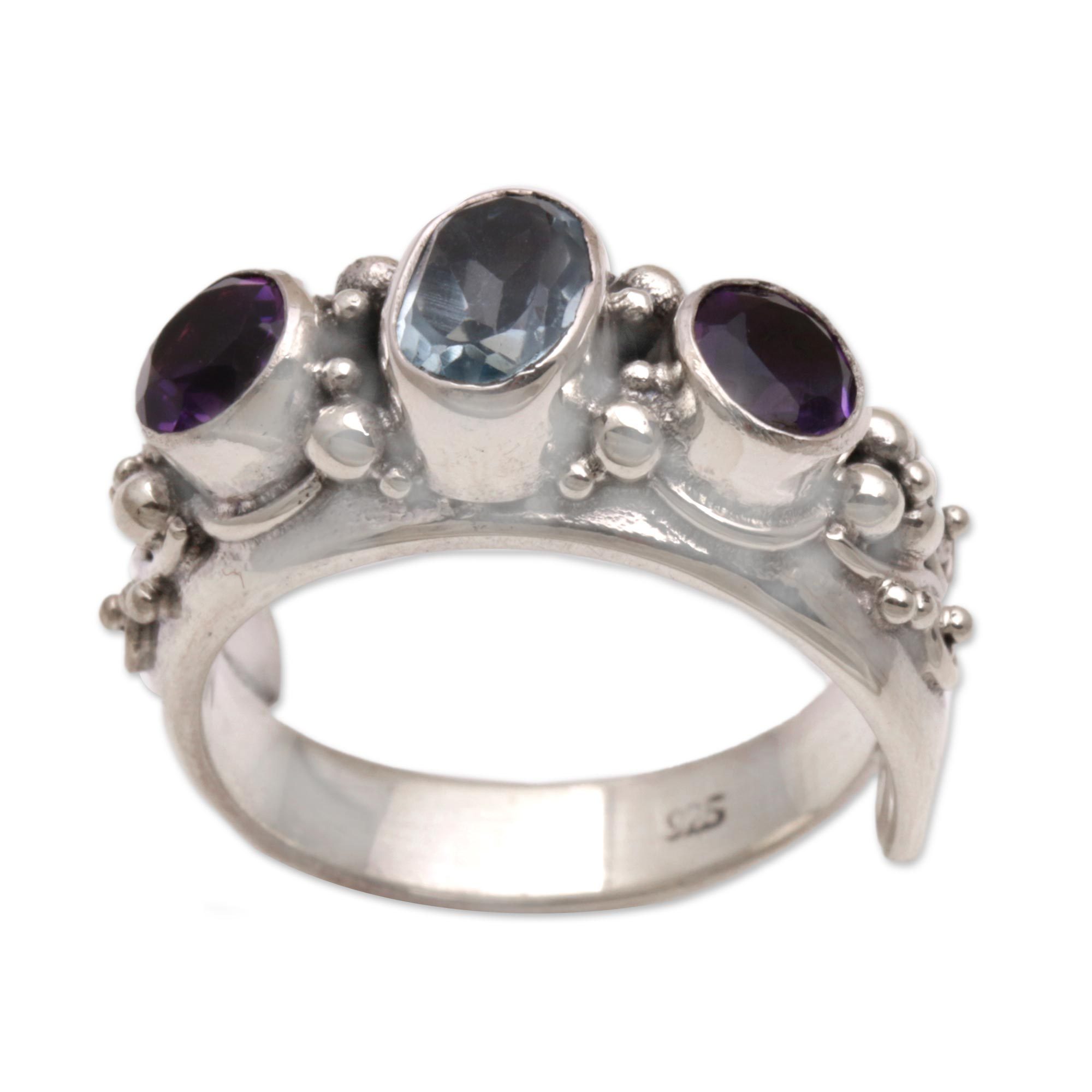 Amethyst and Blue Topaz Ring, 'Morning Joy'