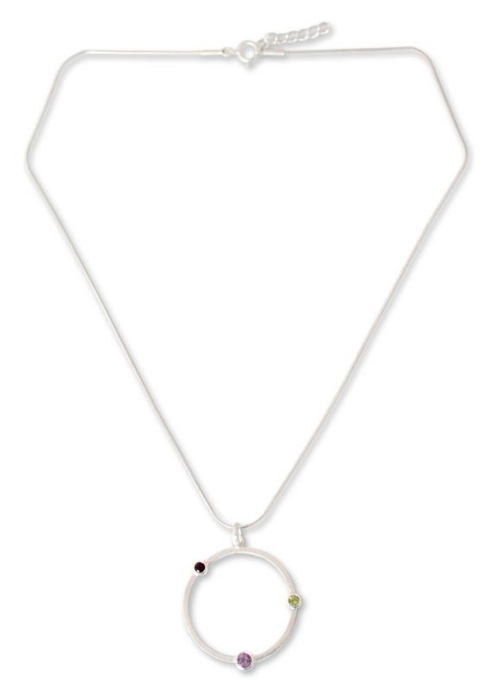 Amethyst and Garnet Silver Pendant Necklace, 'Spring Color'