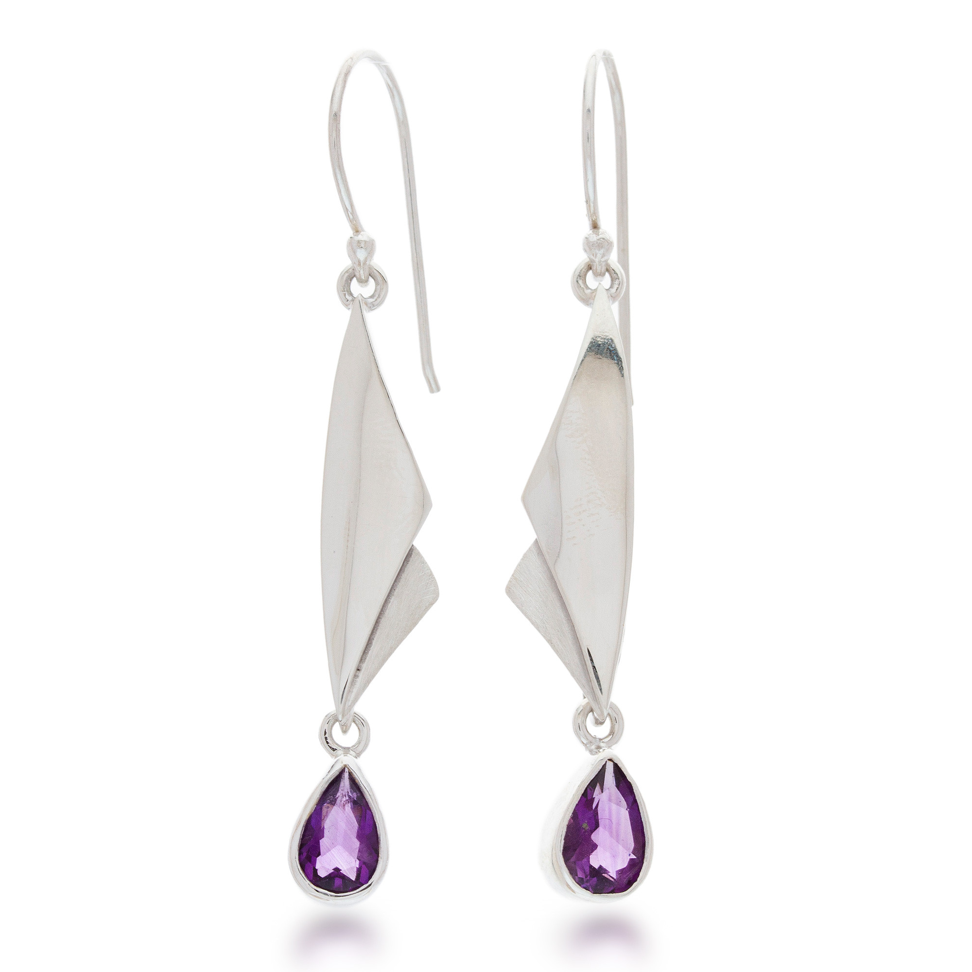 Amethyst dangle earrings, 'On Silver Wings'