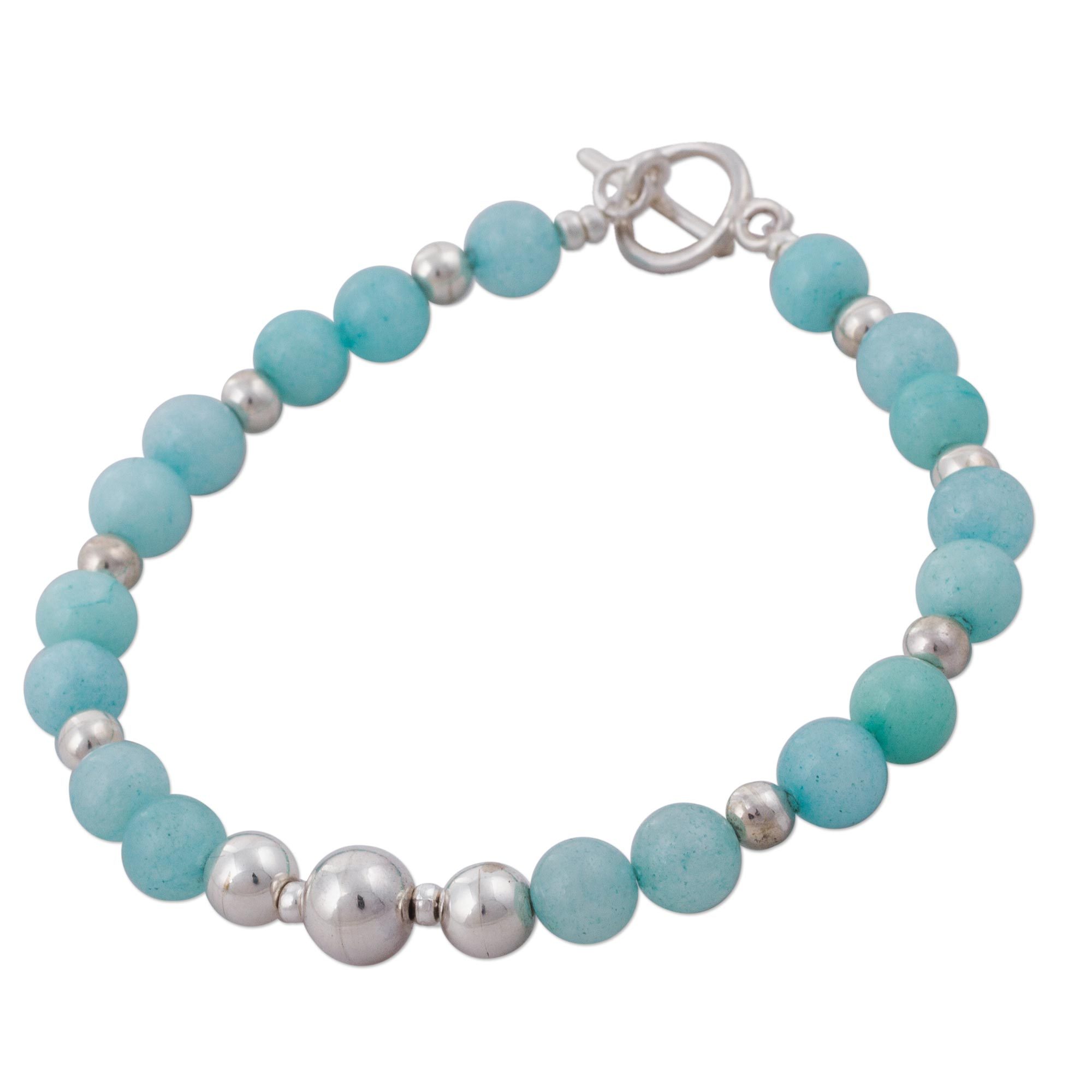 Artisan Crafted Amazonite and 925 Silver Beaded Bracelet, 'Amazon Dreams'