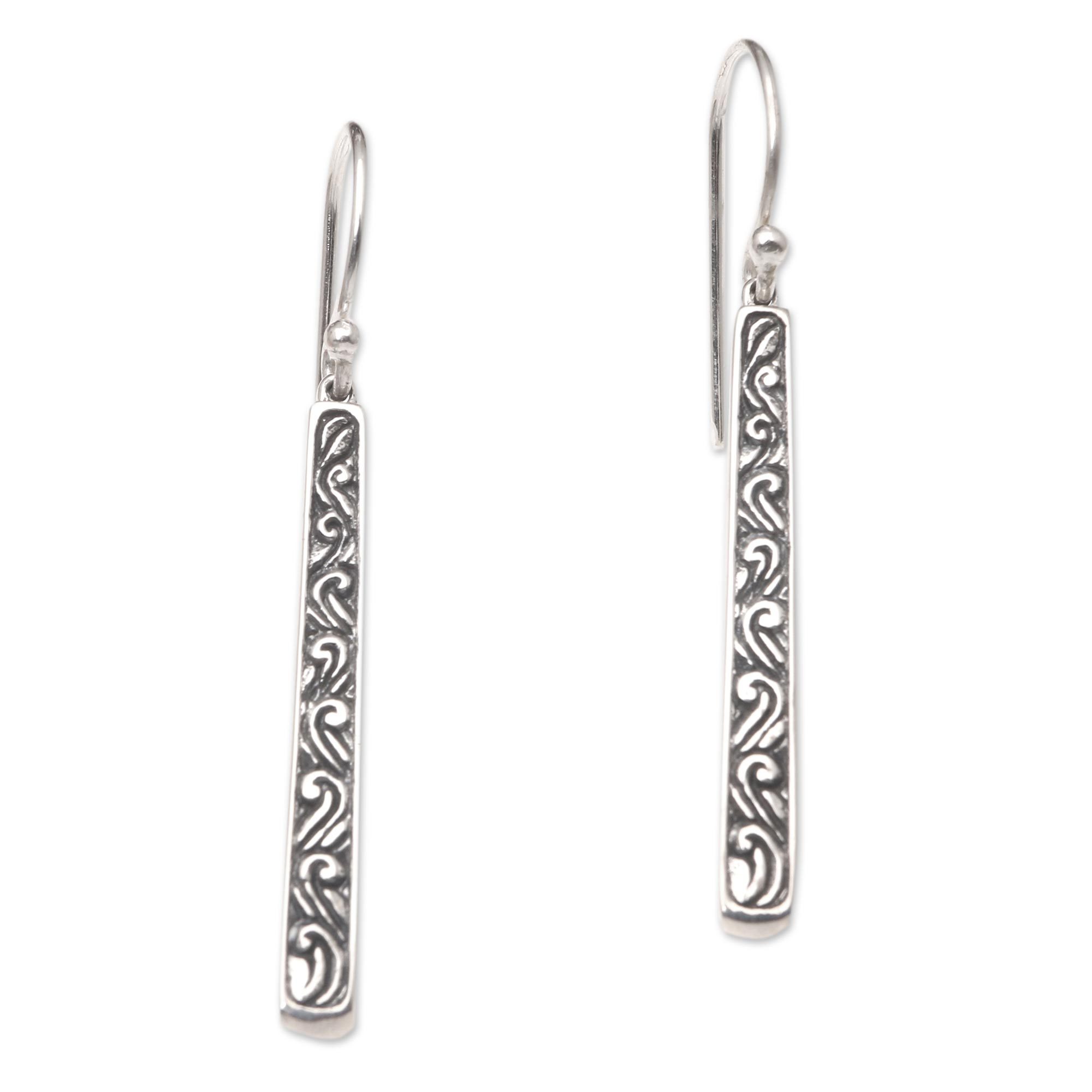 Artisan Crafted Sterling Silver Dangle Earrings, 'Columns and Vines'