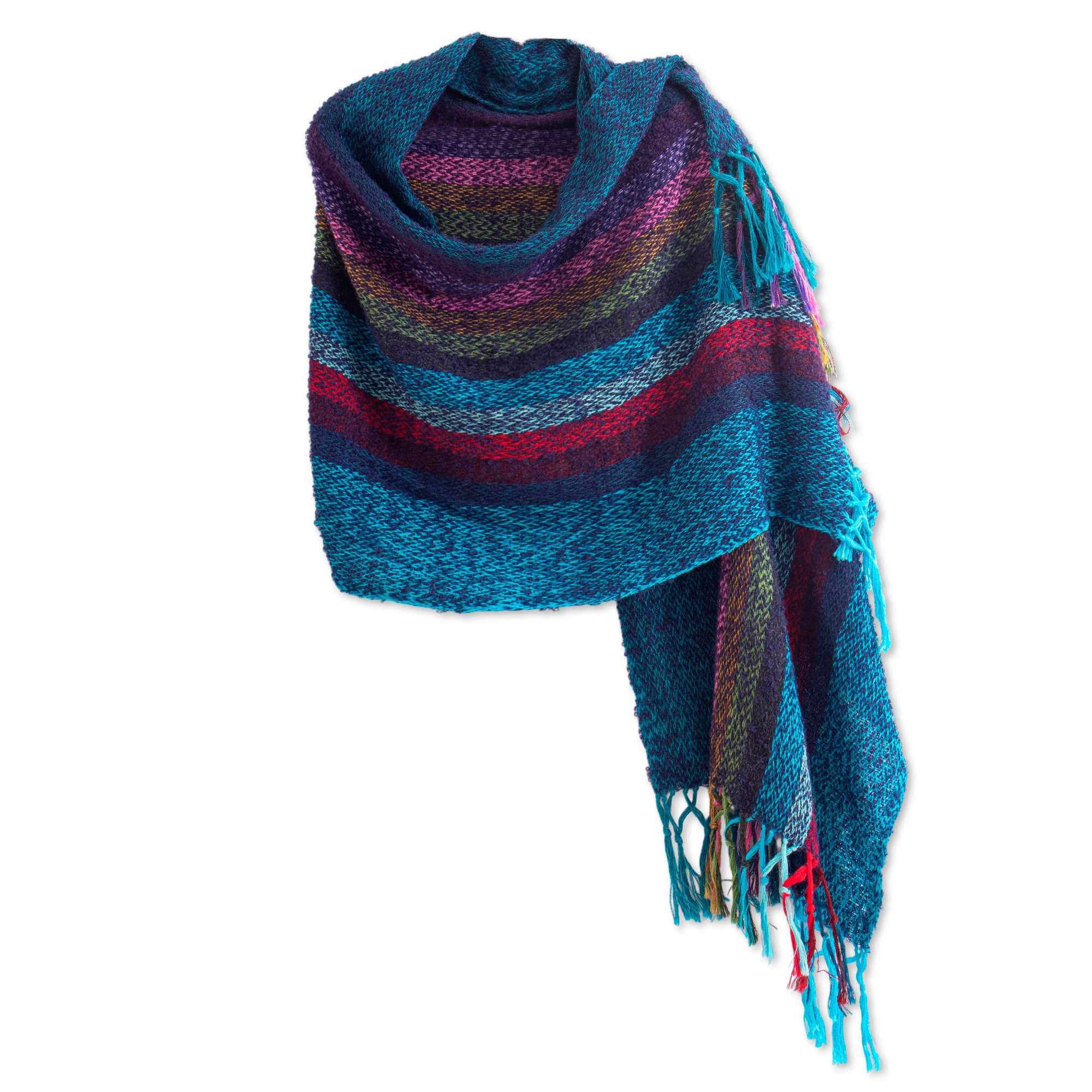 Artisan-Made Striped Soft Alpaca Blend Shawl Woven in Peru, 'The Tides'