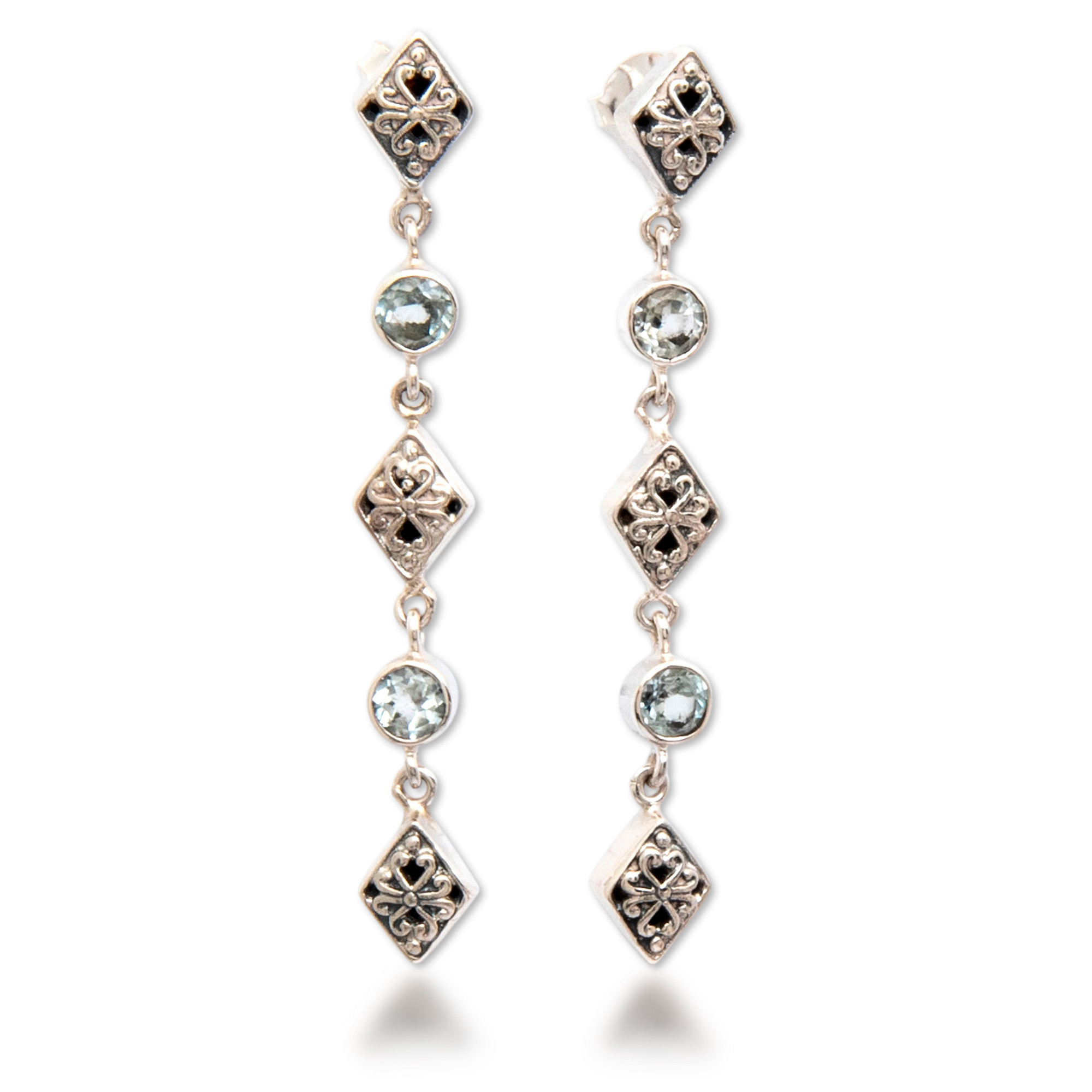 Balinese Kite-Themed Blue Topaz Silver Dangle Earrings, 'Balinese Kite'