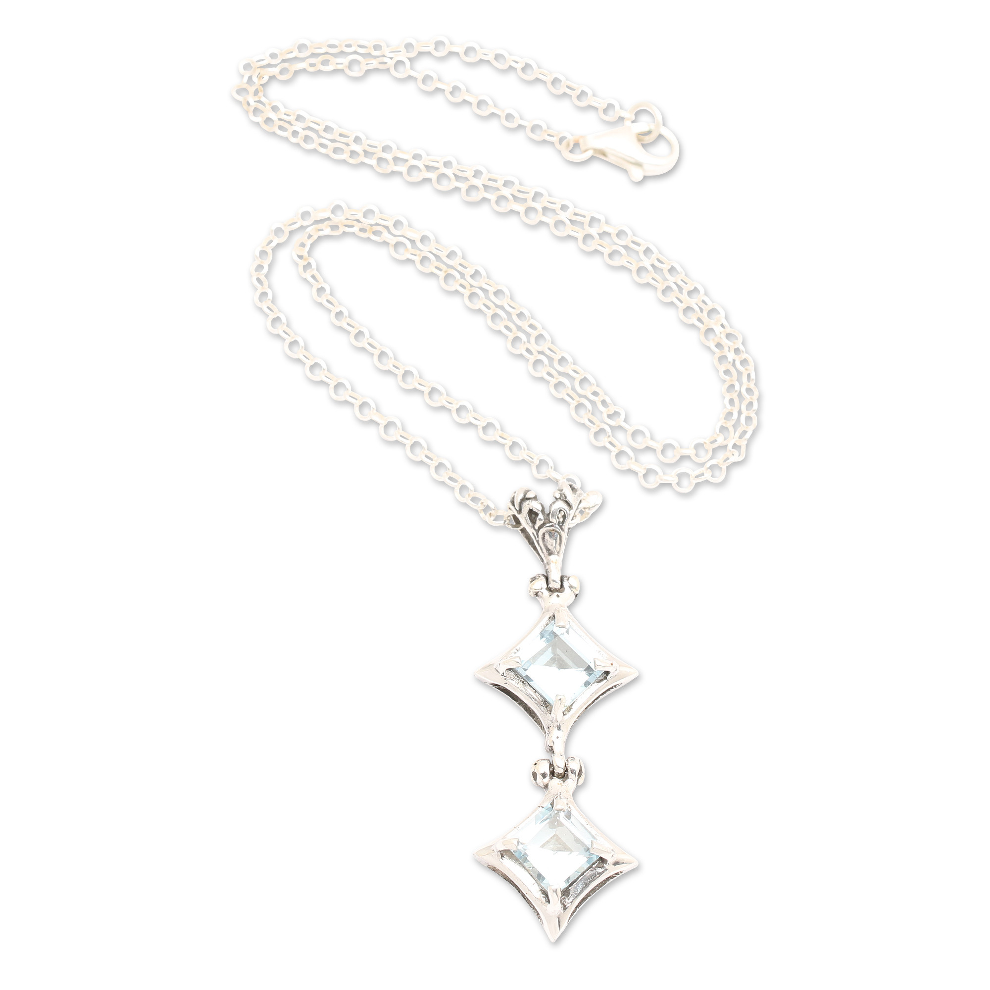 Balinese-Made Polished 3-Carat Blue Topaz Pendant Necklace, 'Celestial Spark'
