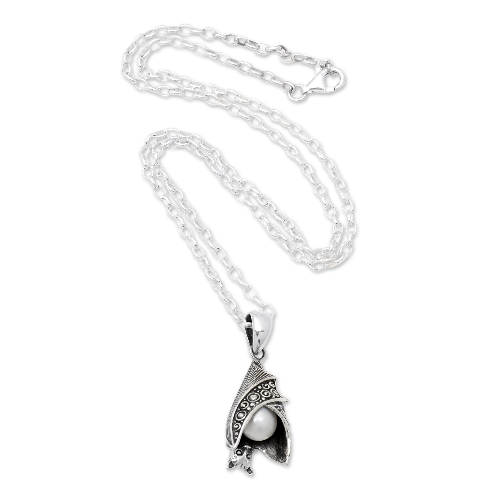 A gorgeous grey cultured pearl embraced by a petite bat is the star of this striking pendant necklace by Bali's Dewa Arimbawa. This sterling silver accessory features a lovely combination of oxidized and polished finishes and is designed for those who love jewelry that breaks the mold.