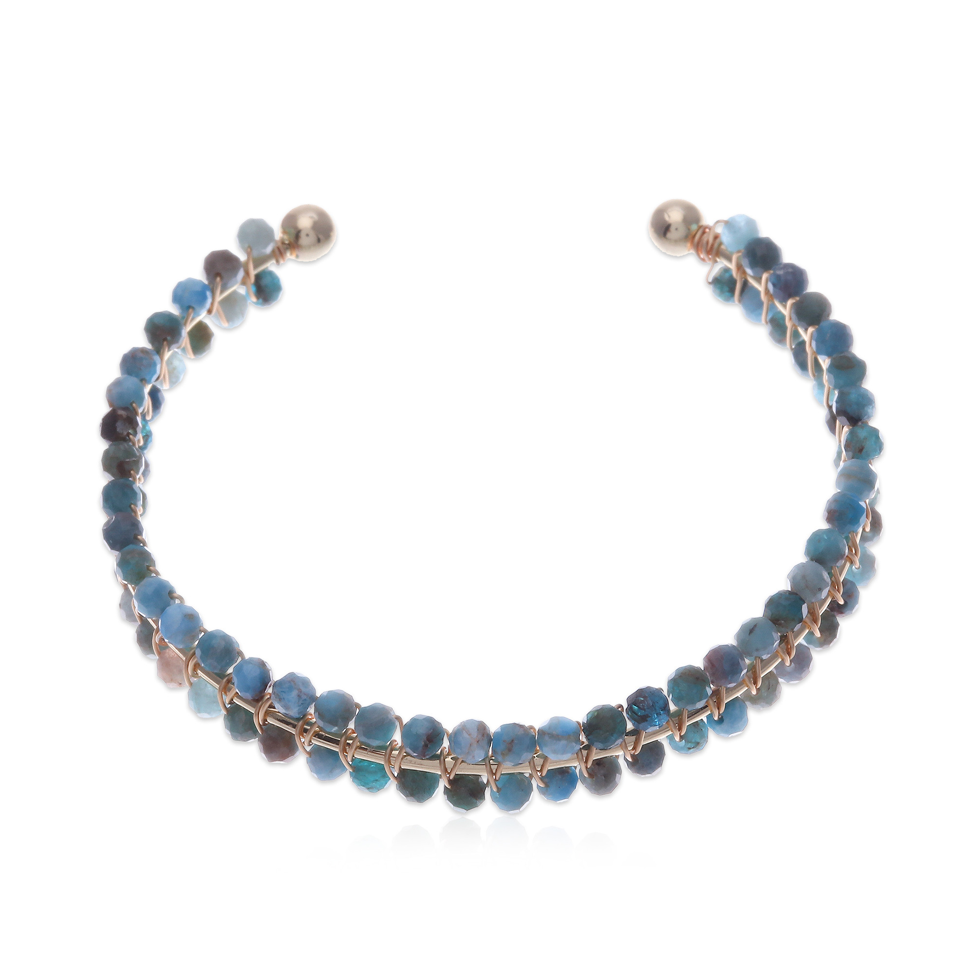 - Apatite, copper wire, 14k gold-plated brass