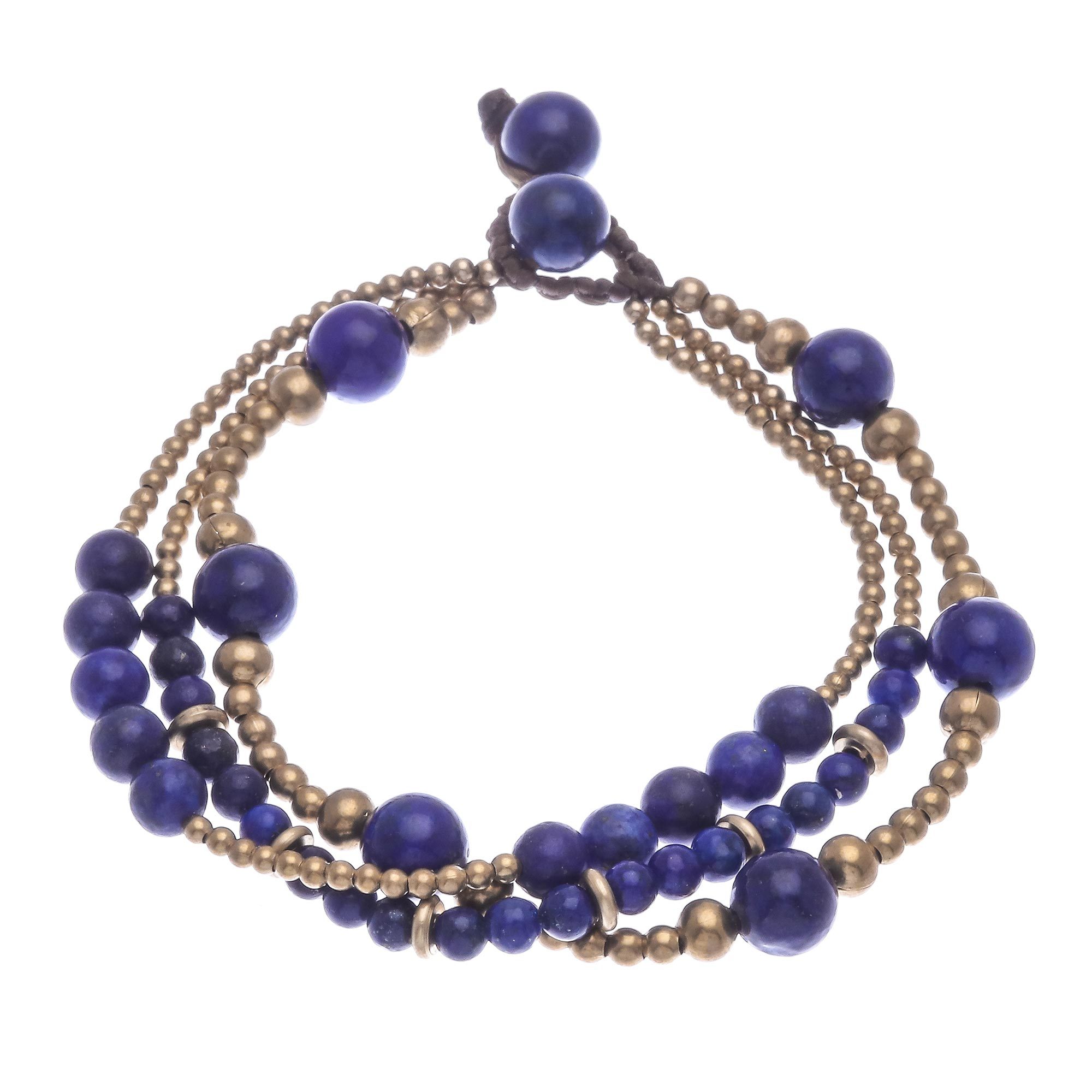 Blue Lapis Lazuli and Brass Beaded Bracelet, 'Natural Wonders'