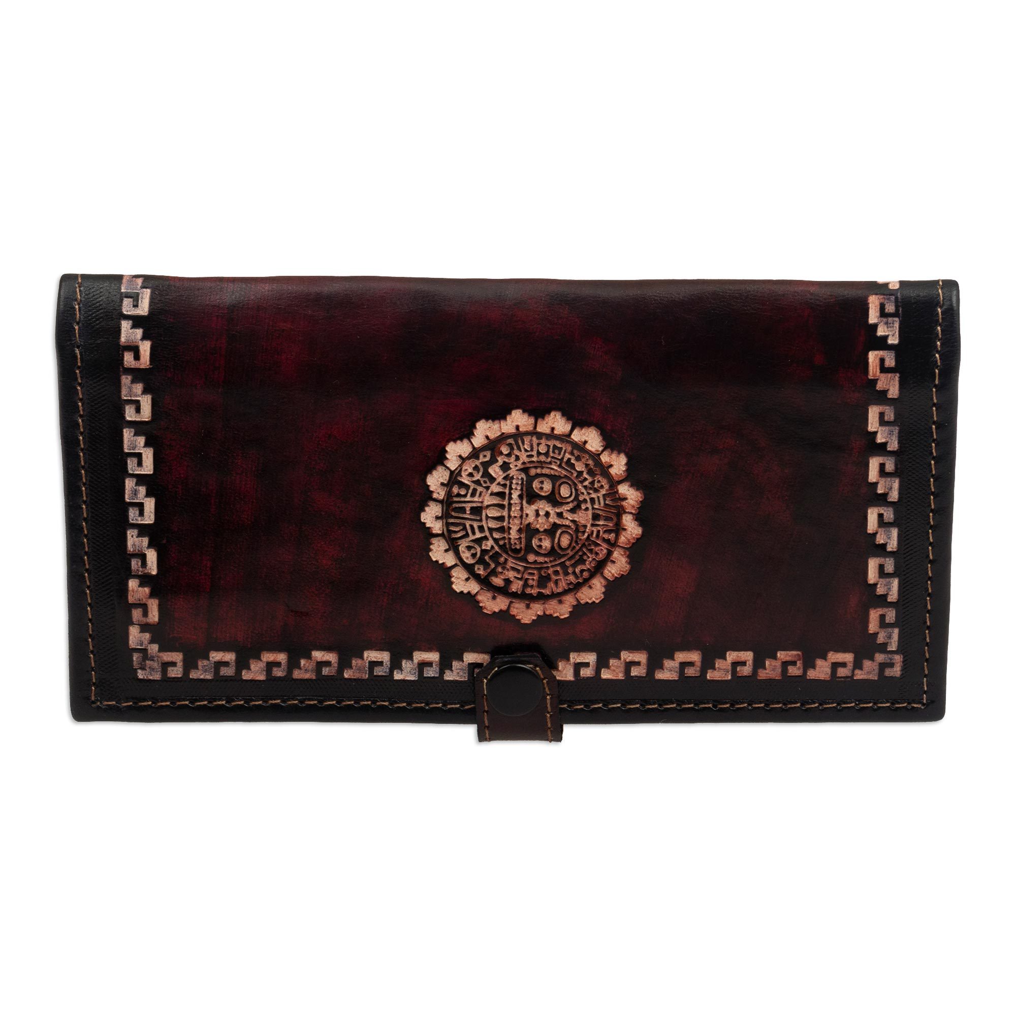 Brown Leather Wallet with Embossed Inca Sun Symbol from Peru, 'Cusco Sun'