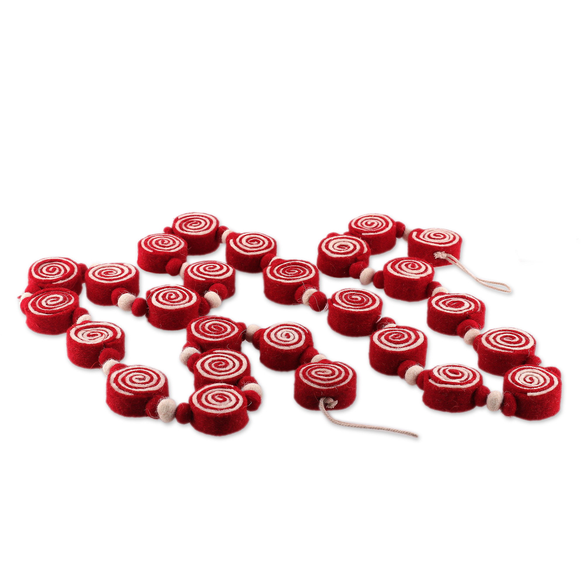 Candy-Themed Christmas Wool Felt Garland from India, 'Sweet Christmas Eve'