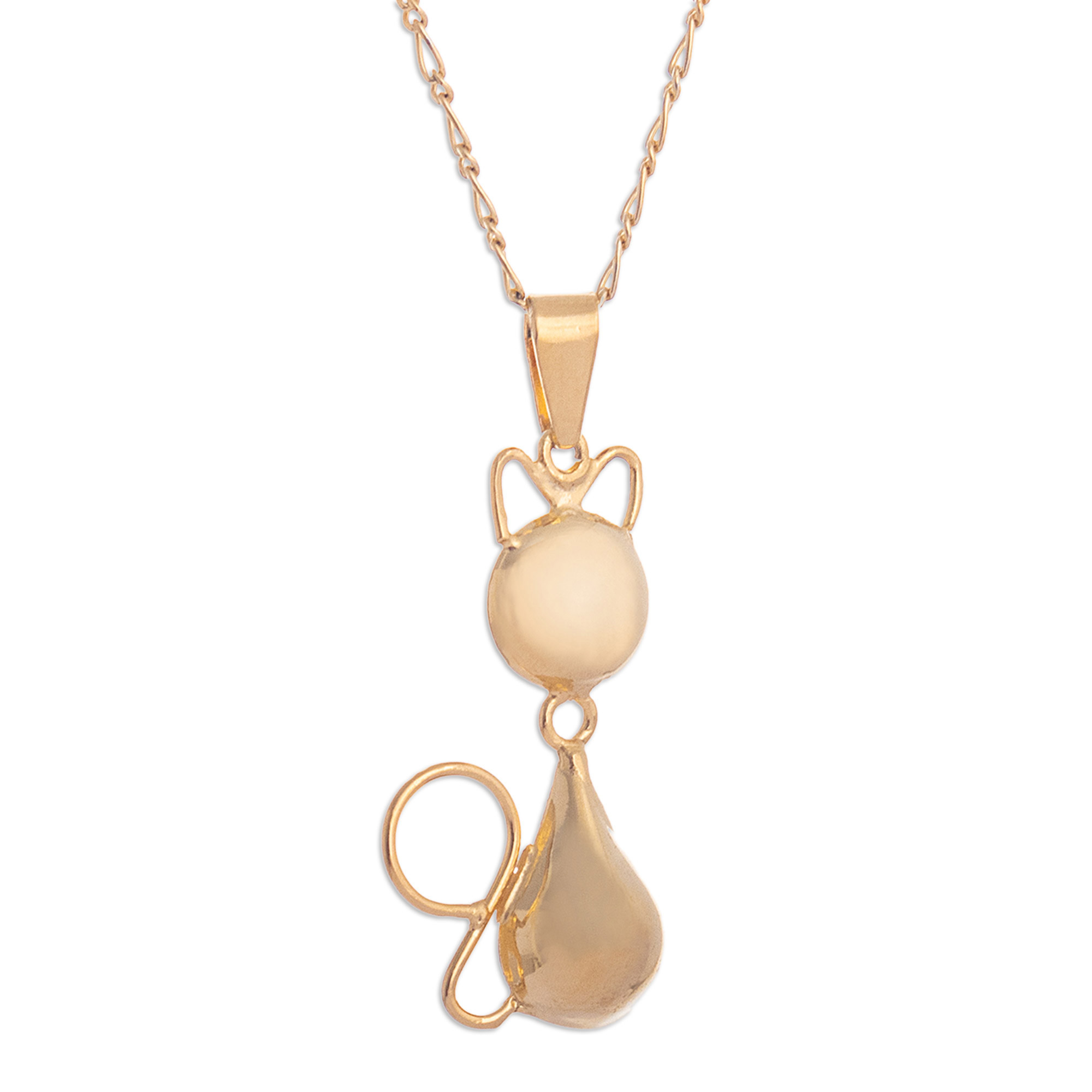 Cat-Themed Gold-Plated Pendant Necklace Handmade in Peru, 'Delightful Pussycat'