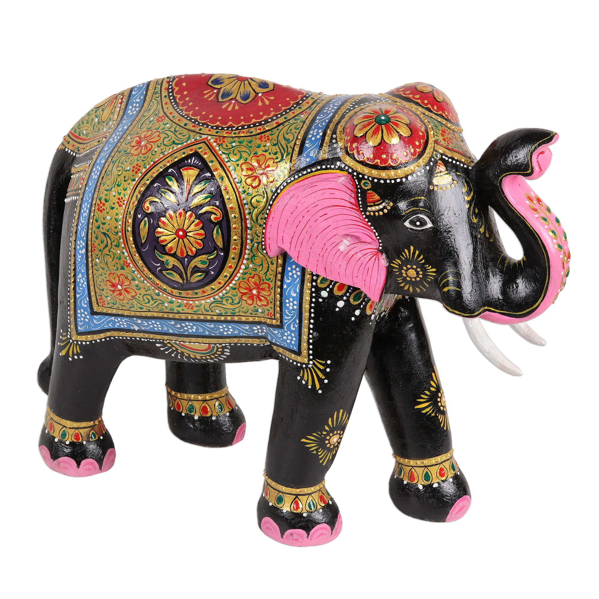 Colorful Handpainted Elephant Sculpture from India, 'Splendid Elephant'