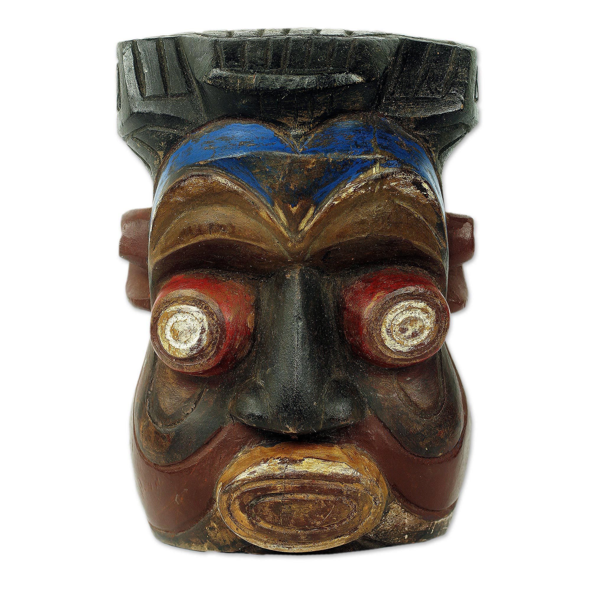 Colorful Igbo Style Wooden Wall Mask from Ghana, 'Ibo'