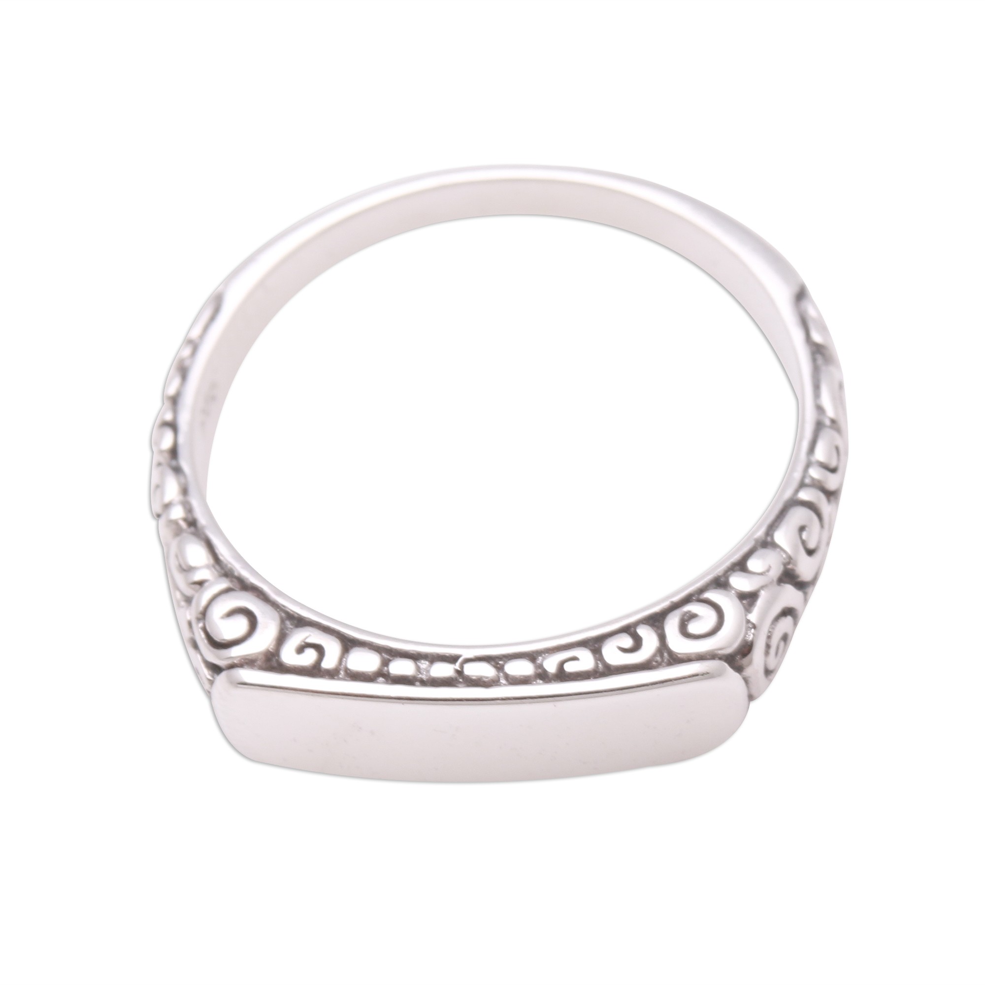 Curl Pattern Sterling Silver Band Ring from Bali, 'Intaglio Beauty'