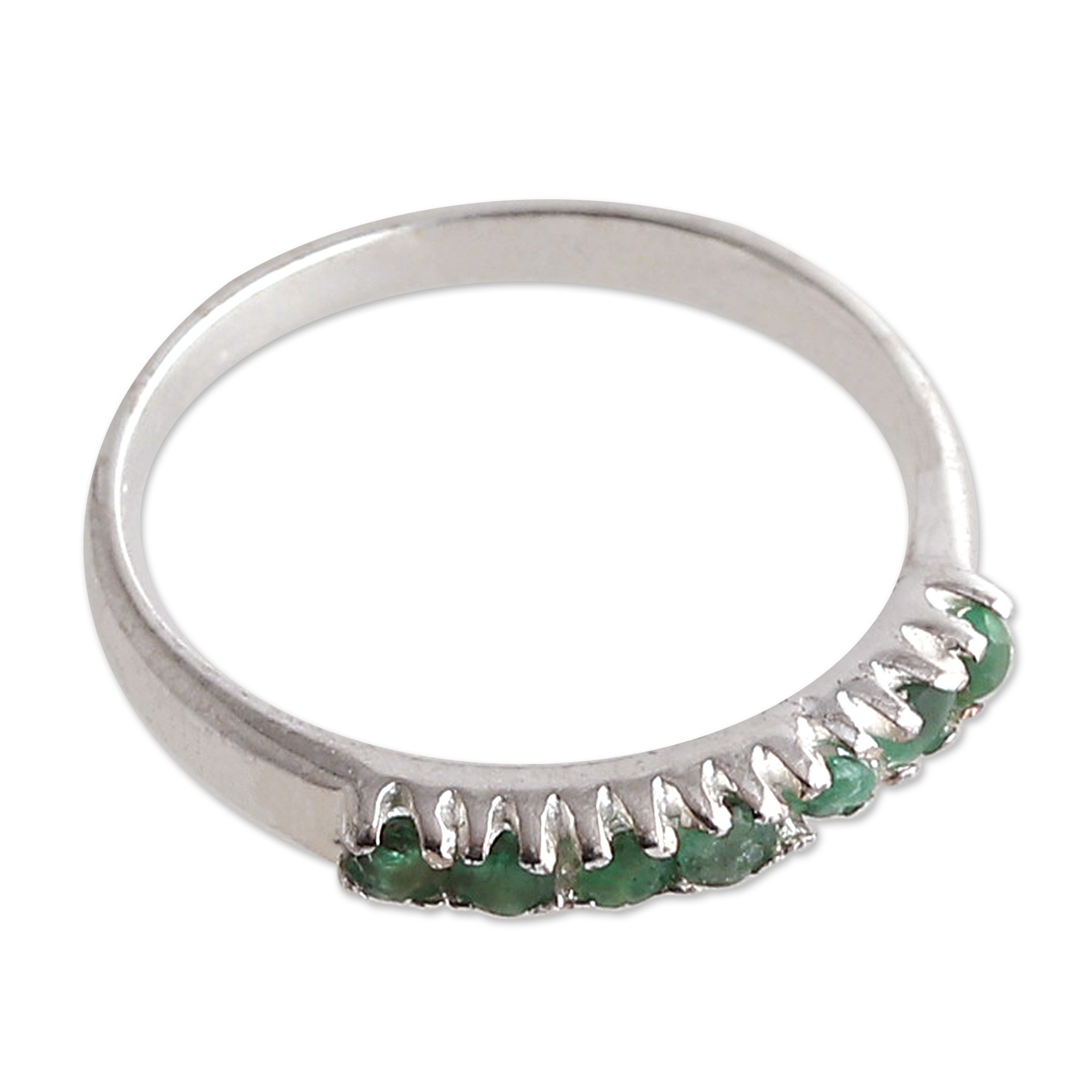 Fair Trade High-Polished Faceted Round Emerald Band Ring, 'Harmonious Princess'