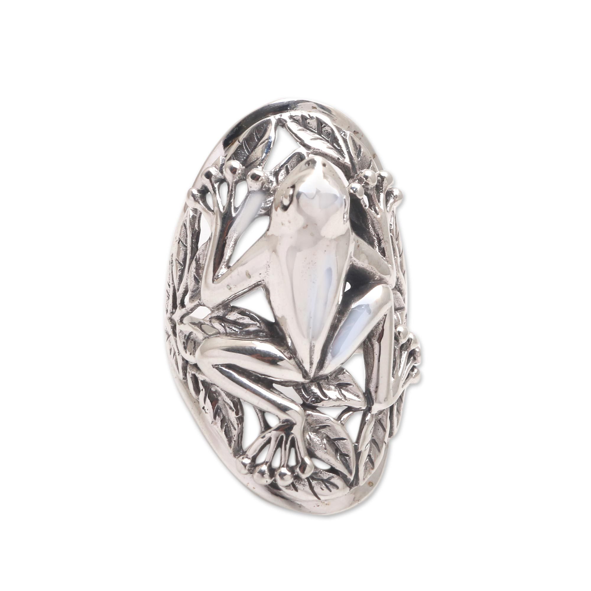 Frog Sterling Silver Cocktail Ring from Bali, 'Ubud Frog'