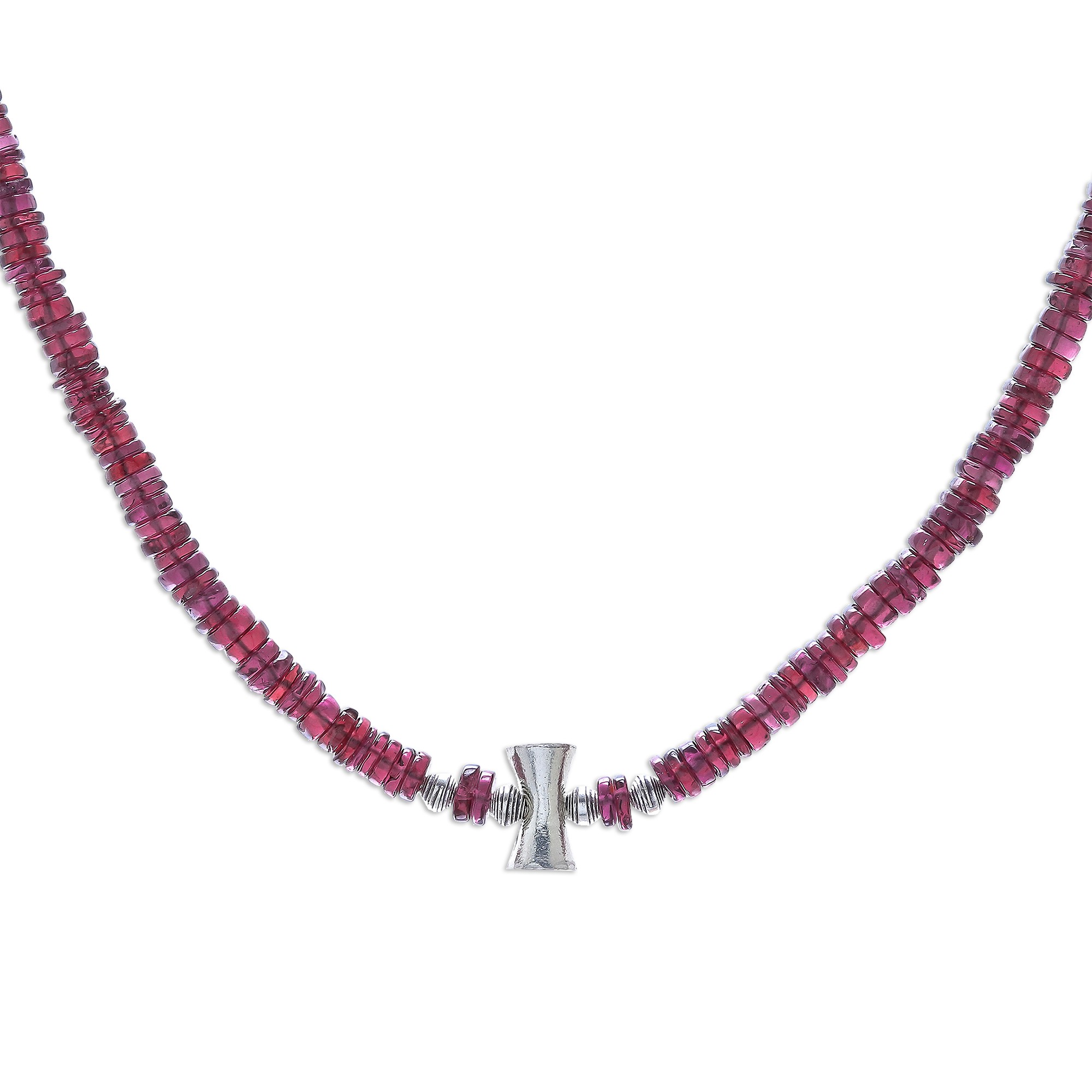 Garnet and Karen Silver Beaded Necklace from Thailand, 'Velvety Love'