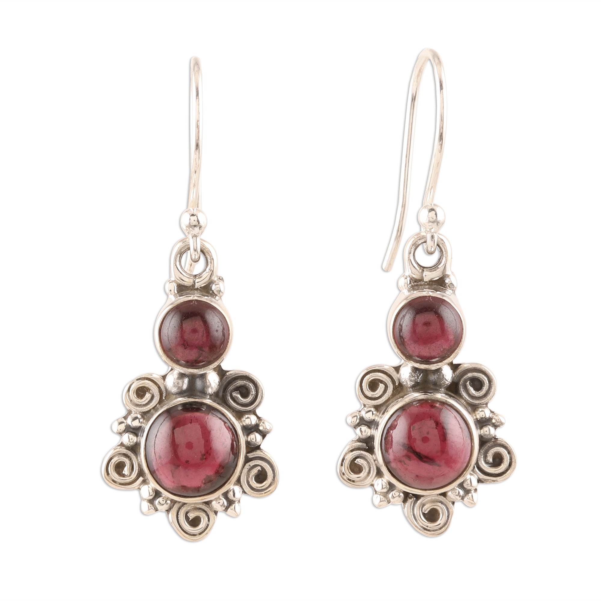 Garnet Dangle Earrings Crafted in India, 'Inspired Love'