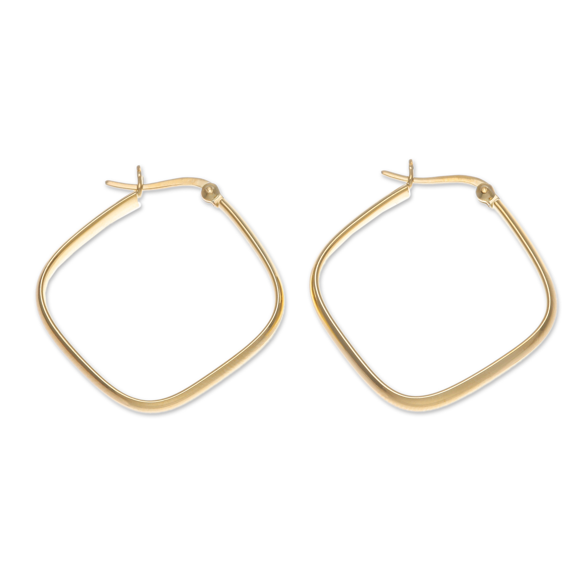Geometric 18k Gold-Plated Hoop Earrings Crafted in Thailand, 'Sides of Arcadia'