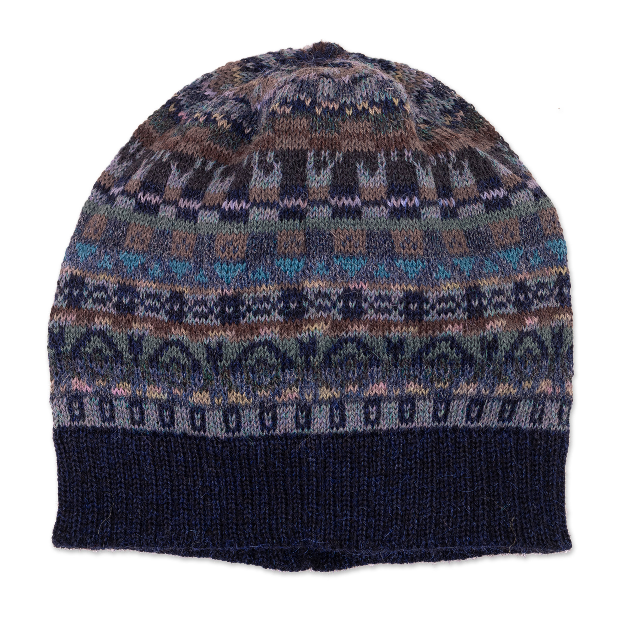 Geometric-Patterned Knit Ribbed Baby Alpaca Hat from Peru, 'Sacred Path'