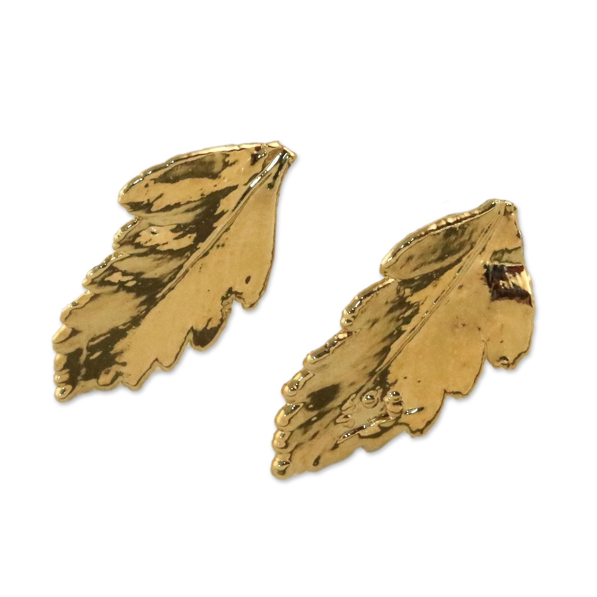 - 22k gold plated natural davallia leaf, stainless steel posts