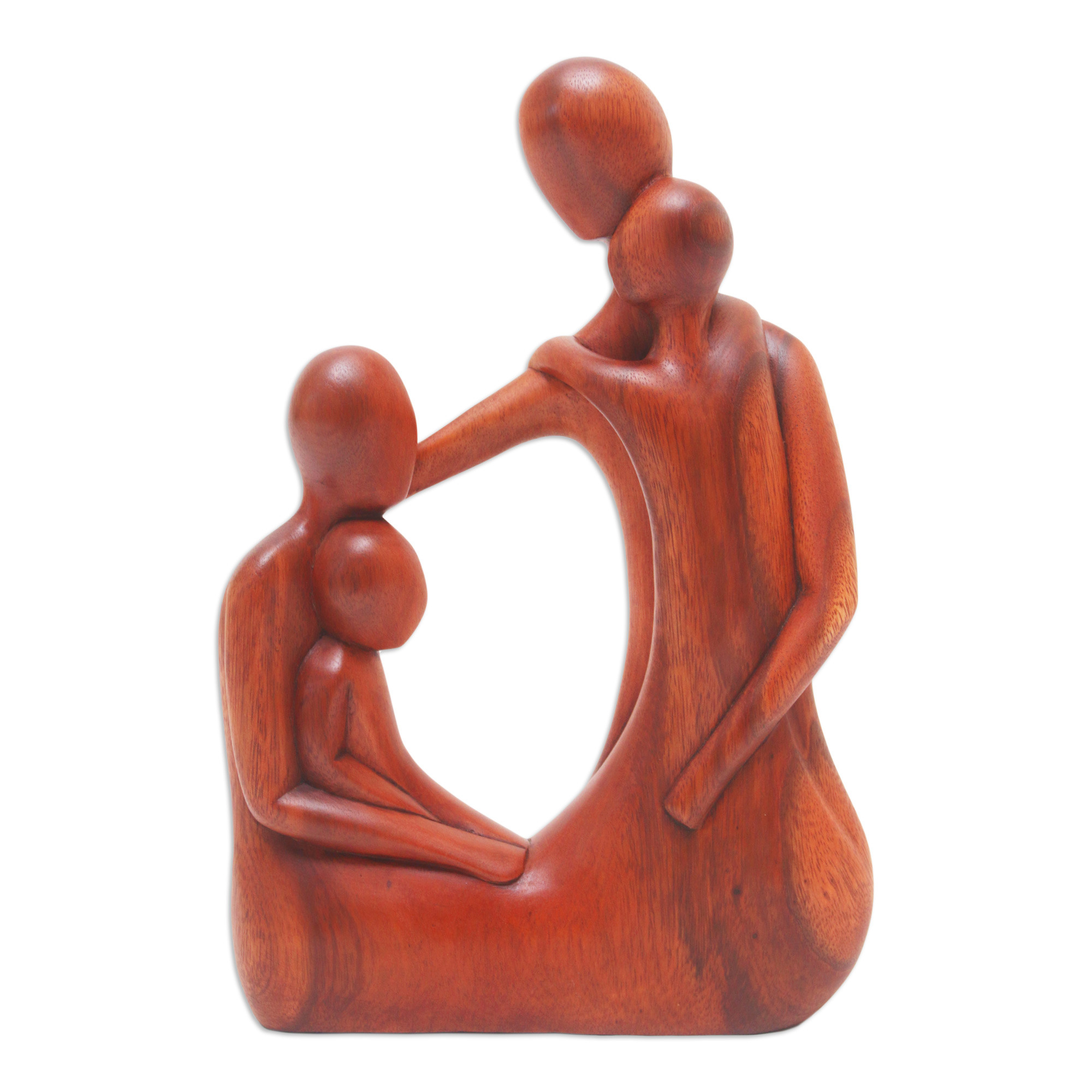Hand-Carved Family Suar Wood Sculpture from Bali, 'Forest Family'