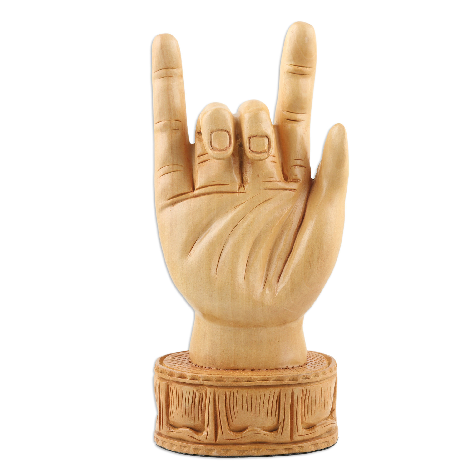 Hand-Carved Kadam Wood Sculpture of the Karana Gesture, 'Karana'