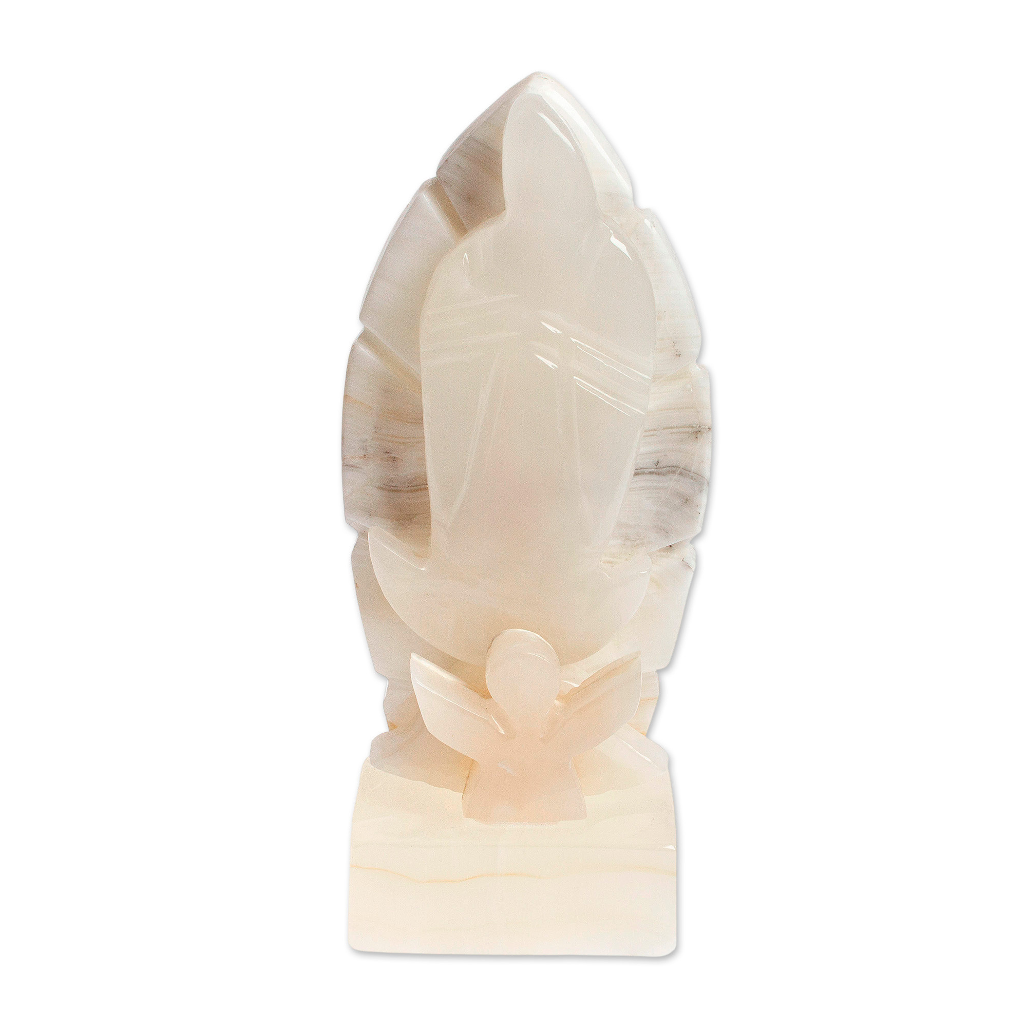 Hand-Carved Our Lady of Guadalupe Natural Onyx Sculpture, 'Virtuous Guadalupe'