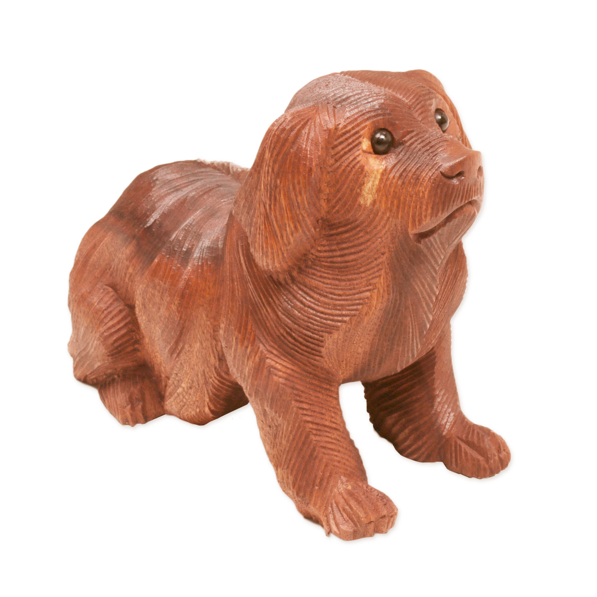 Hand-Carved Suar Wood and Onyx Dog Sculpture from Bali, 'Havanese Dog'