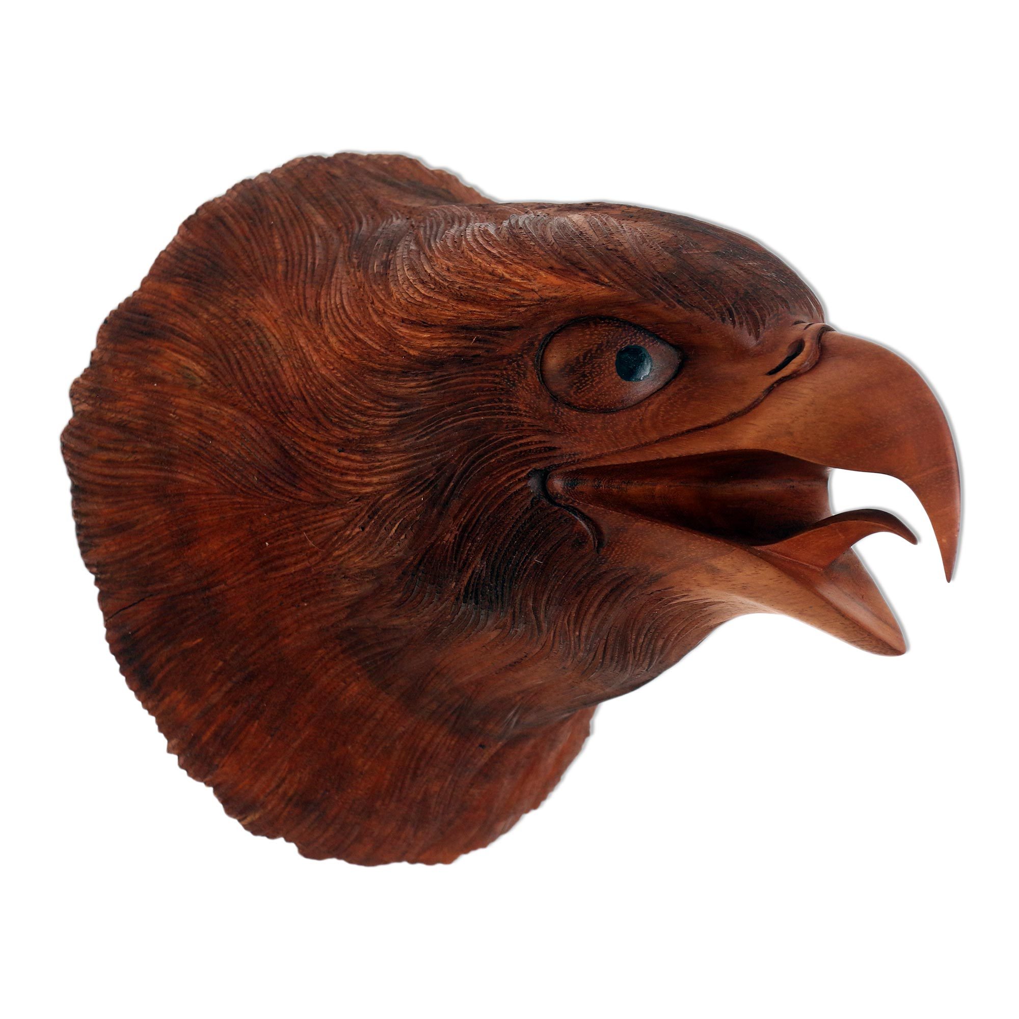 Hand Carved Suar Wood Eagle Head Wall Decor, 'Eagle Eyes'