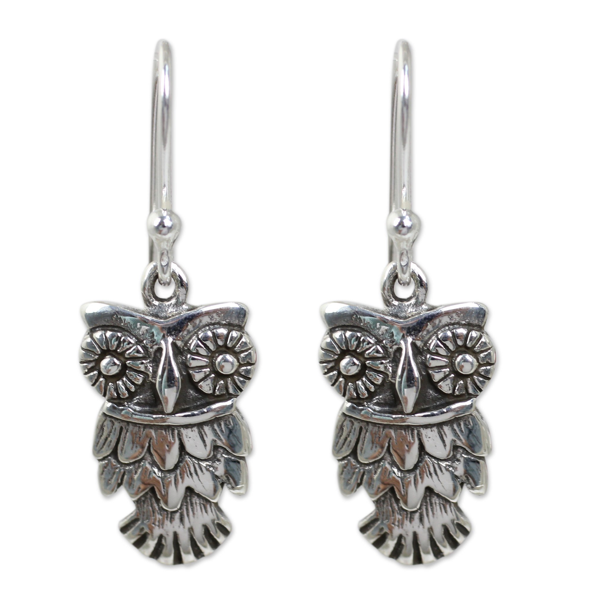 Hand Crafted Owl Dangle Earrings in Sterling Silver 925, 'Owl Love'