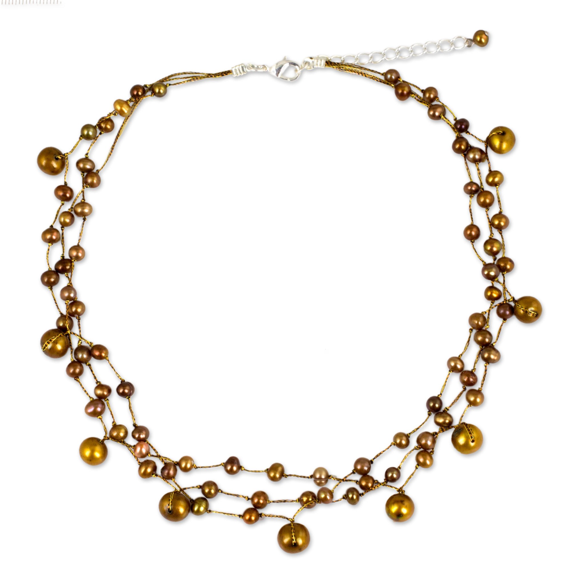 Hand Crafted Pearl Choker Necklace, 'Cinnamon Glow'