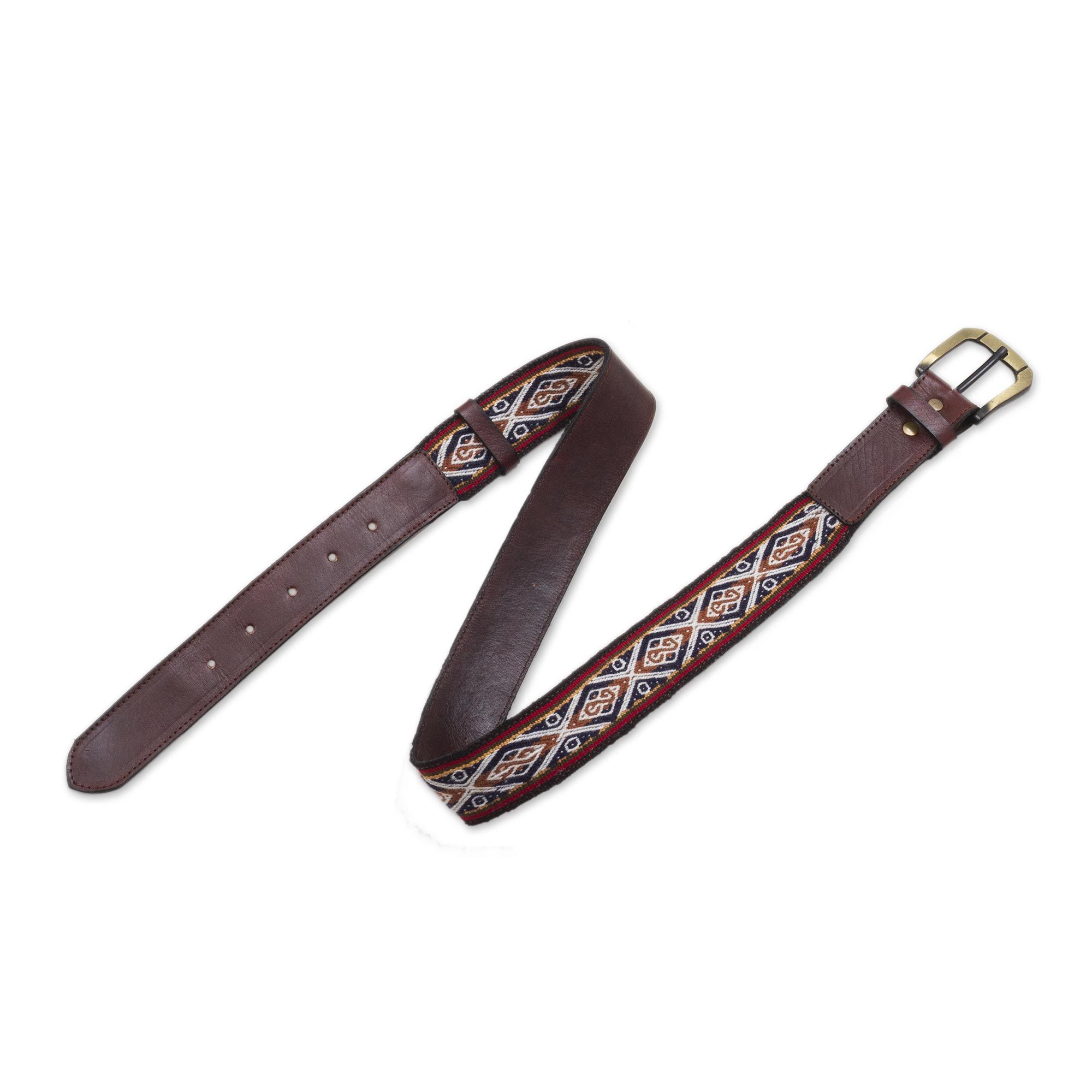 Hand Loomed Wool Accent Leather Belt, 'Inca Ancestors'