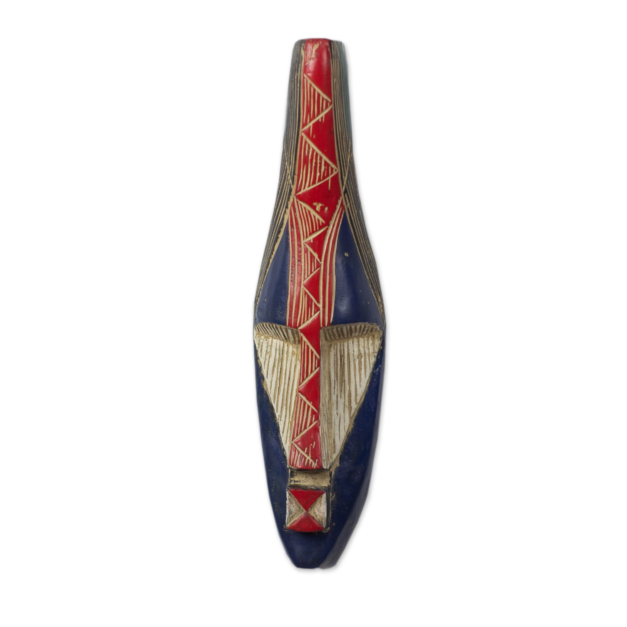 Handcrafted African Sese Wood Mask in Blue and Red, 'Amewuga'