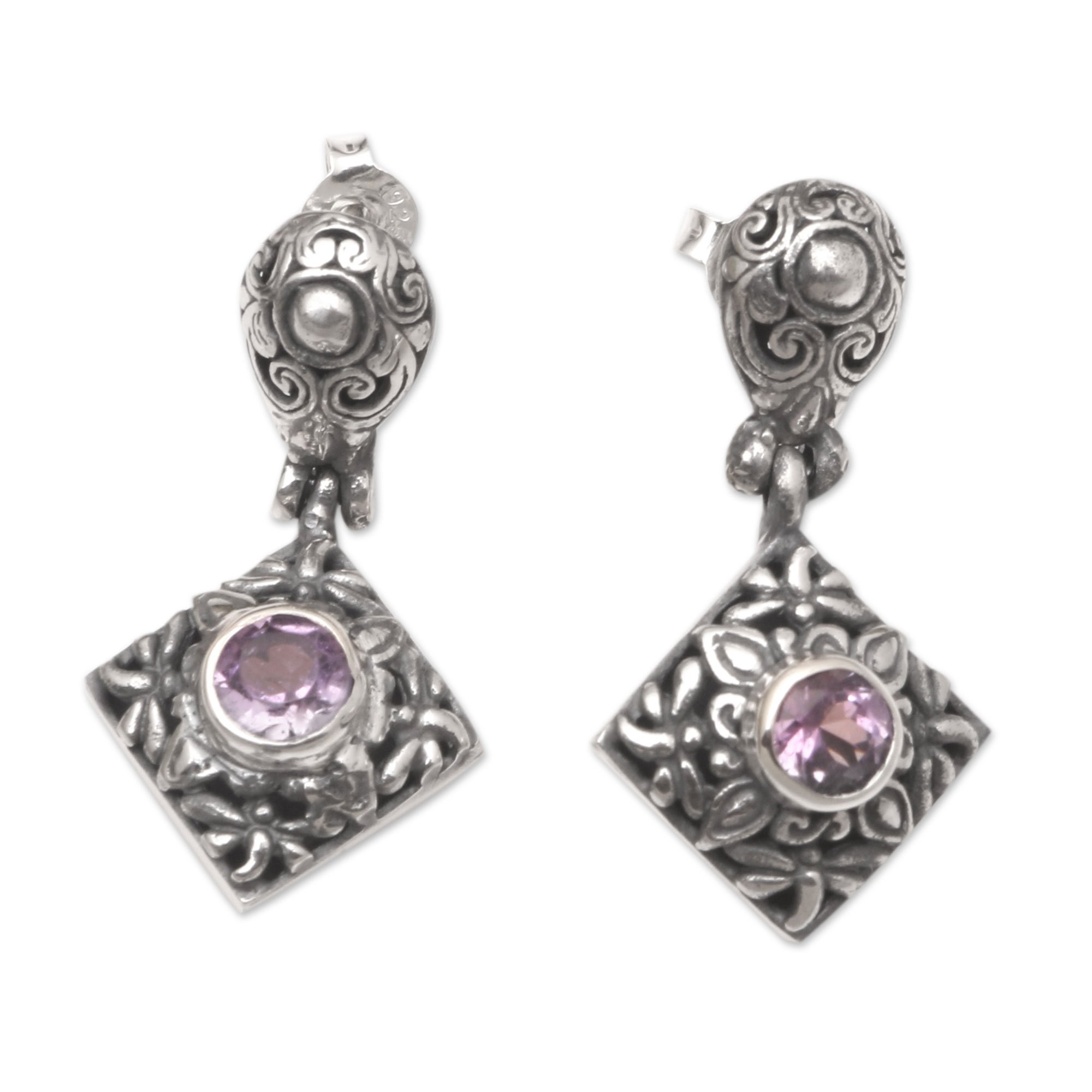 Handcrafted Amethyst Earrings from Bali, 'Dragonfly Antics'