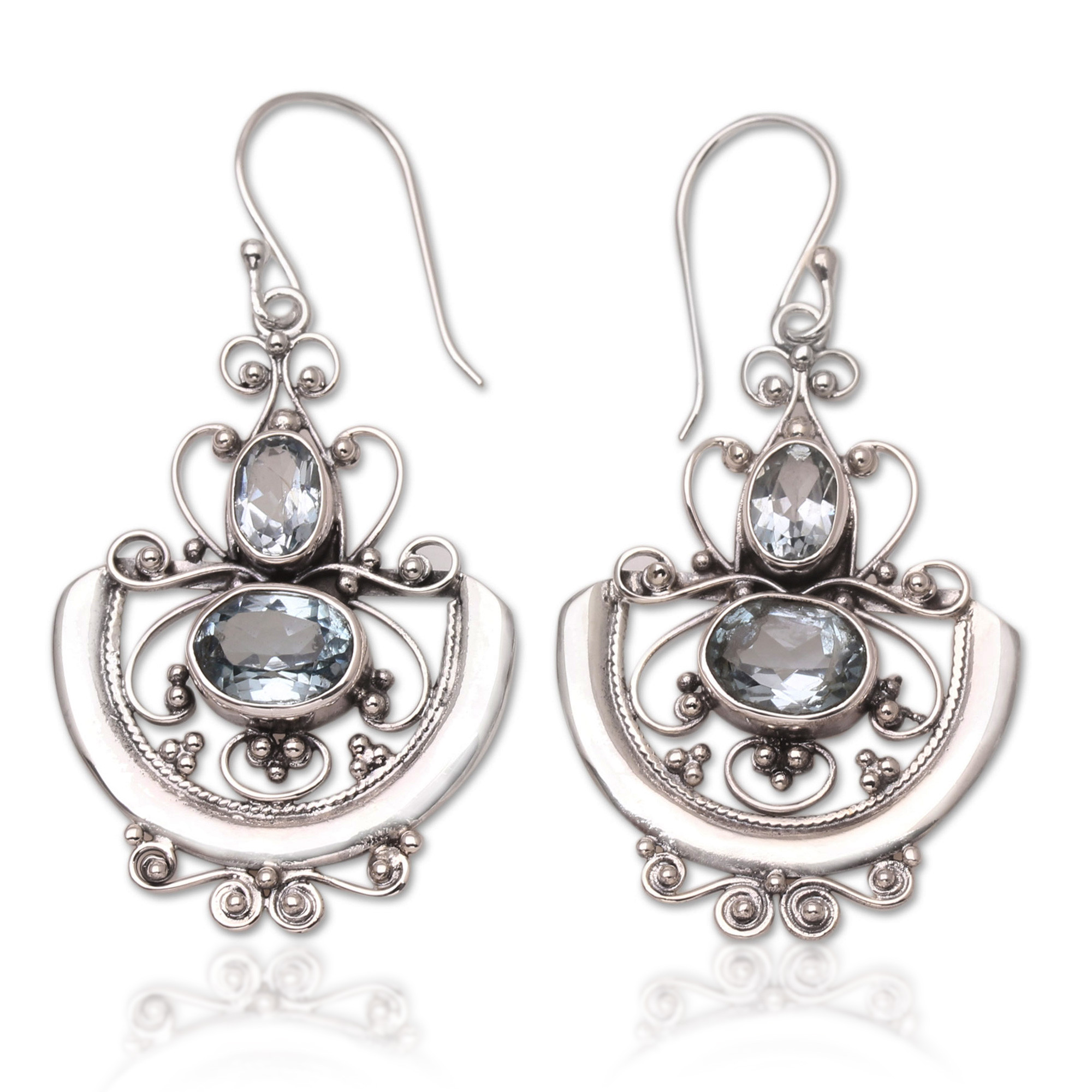 Handcrafted Blue Topaz and Silver Dangle Earrings, 'Balinese Goddess'