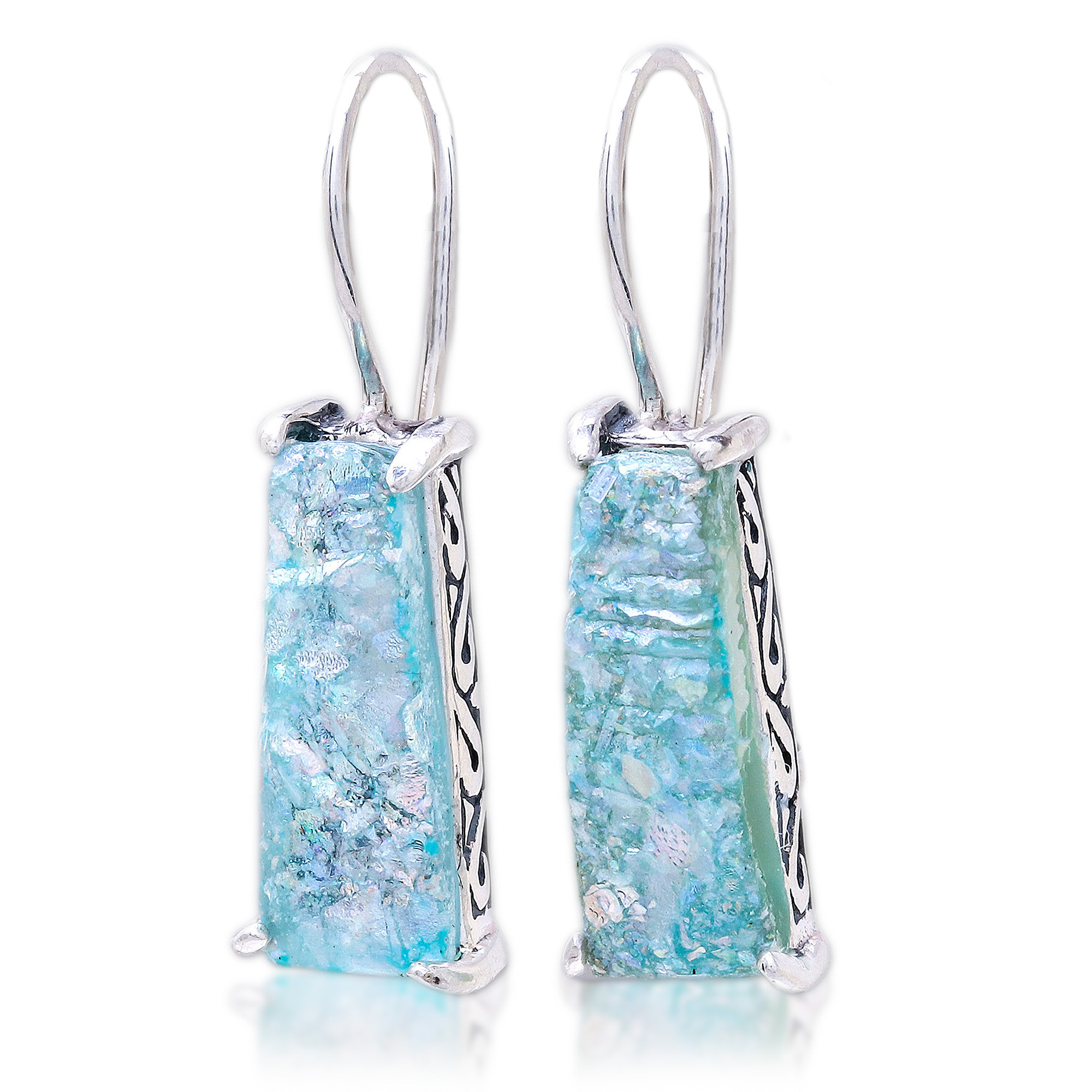 Handcrafted Roman Glass Drop Earrings from Thailand, 'Roman Towers'