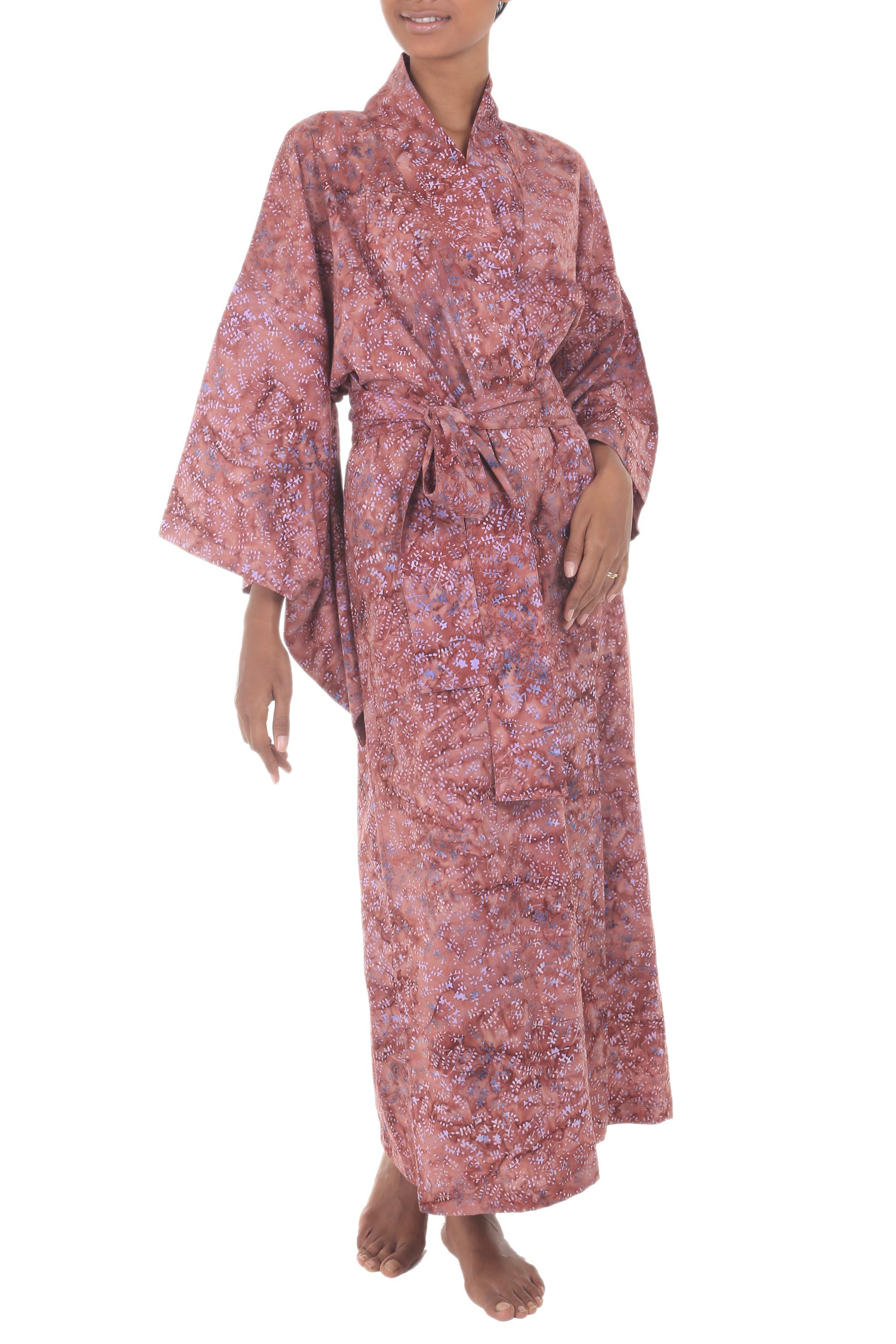 Handmade 100% Cotton Robe in Red Pink Tones from Indonesia, 'Earth Dancer'