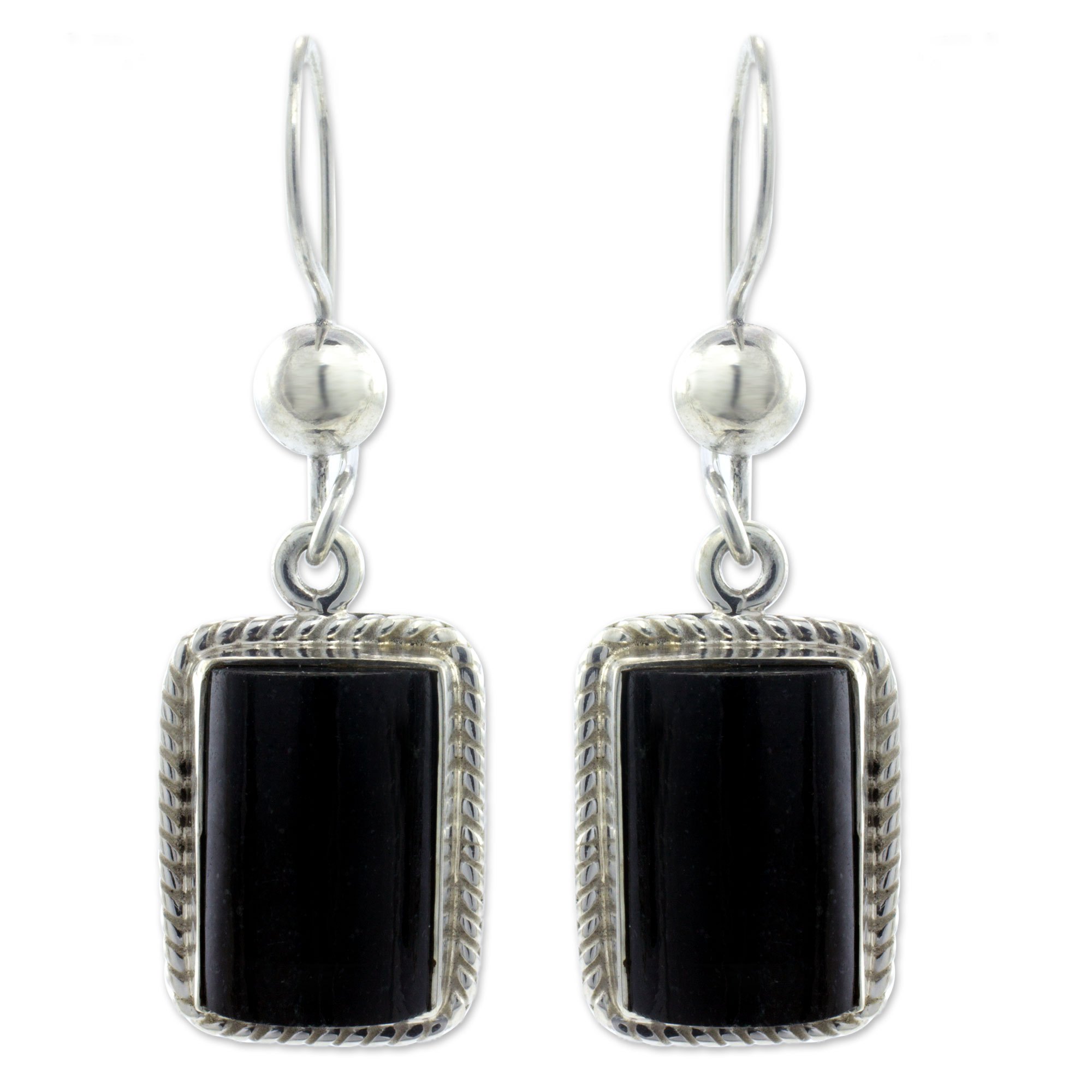 Handmade Guatemalan Black Jade Earrings, 'Night Monument'