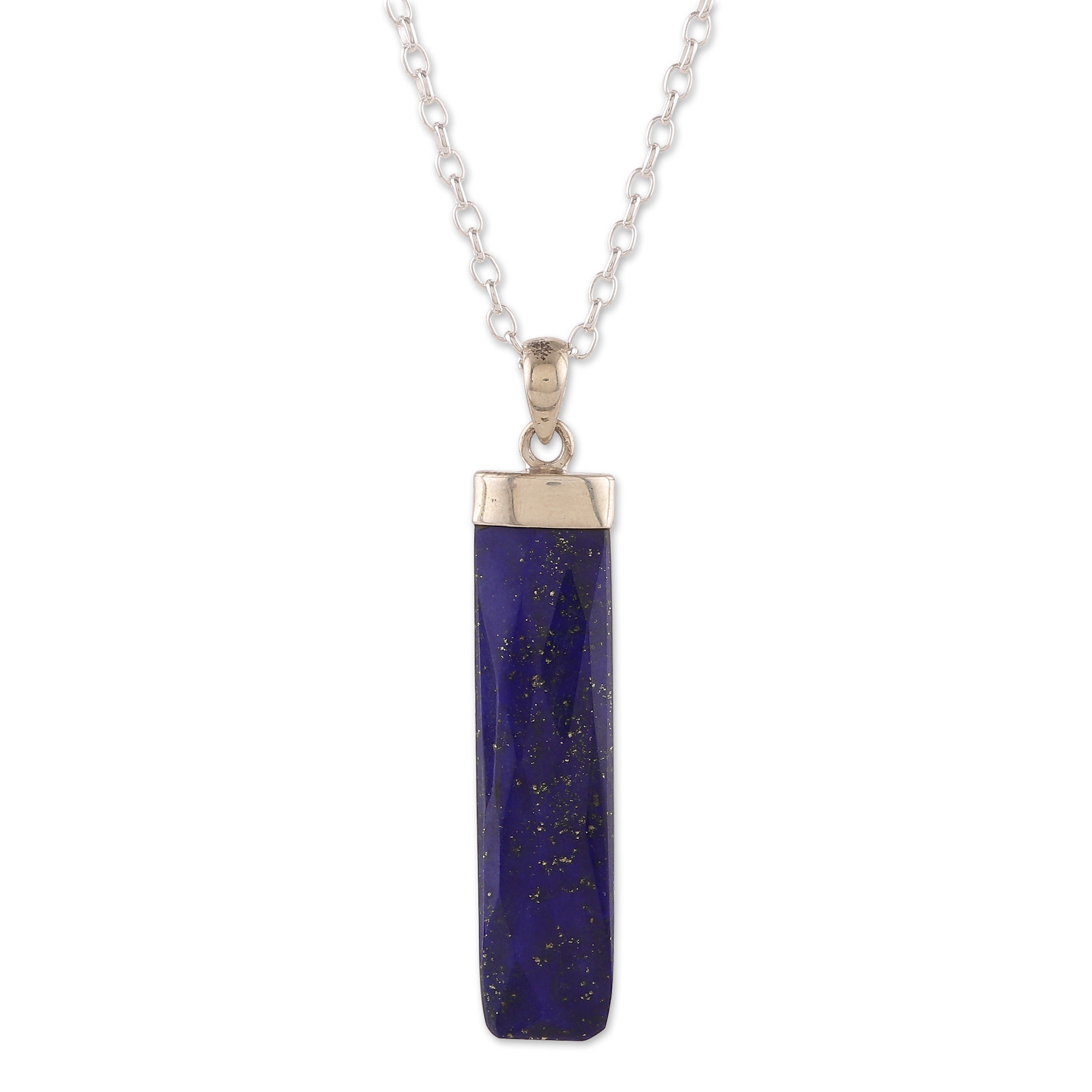 High-Polished Minimalist Lapis Lazuli Pendant Necklace, 'Fragment of Intellect'