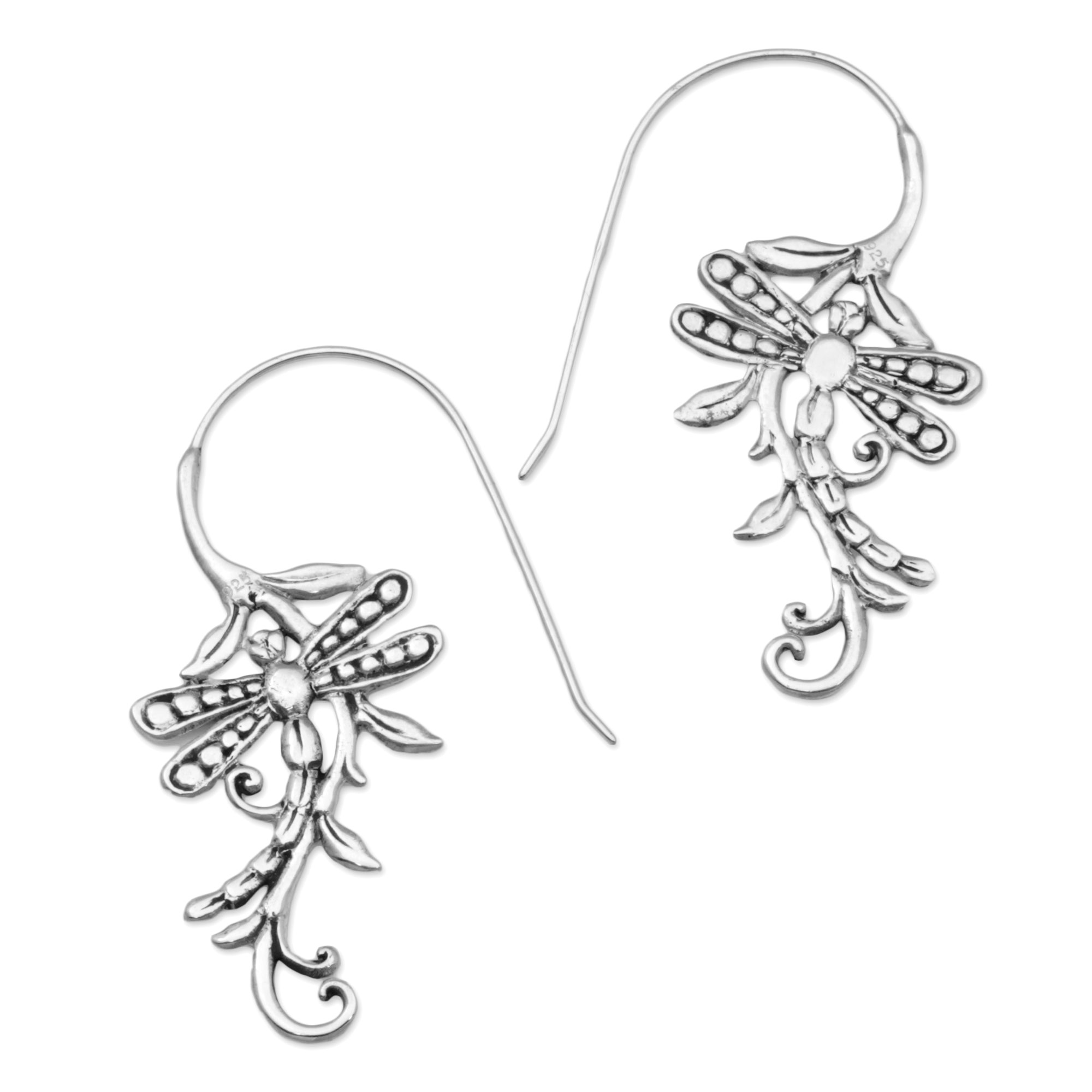 Indonesian Handmade Sterling Silver Dragonfly Drop Earrings, 'Dragonfly Allure'