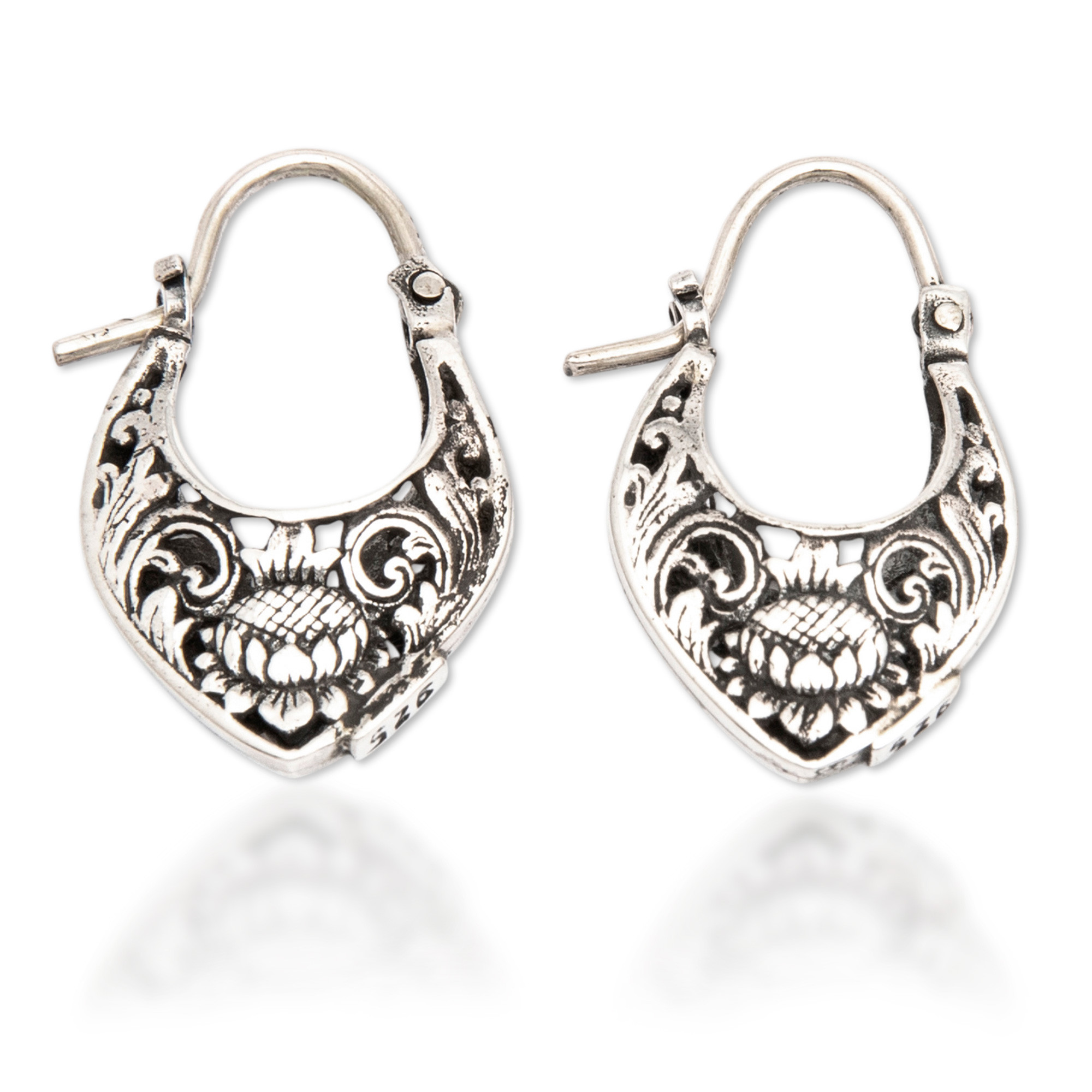 Lotus Flower-Themed Textured Sterling Silver Hoop Earrings, 'Blooming Lotus'