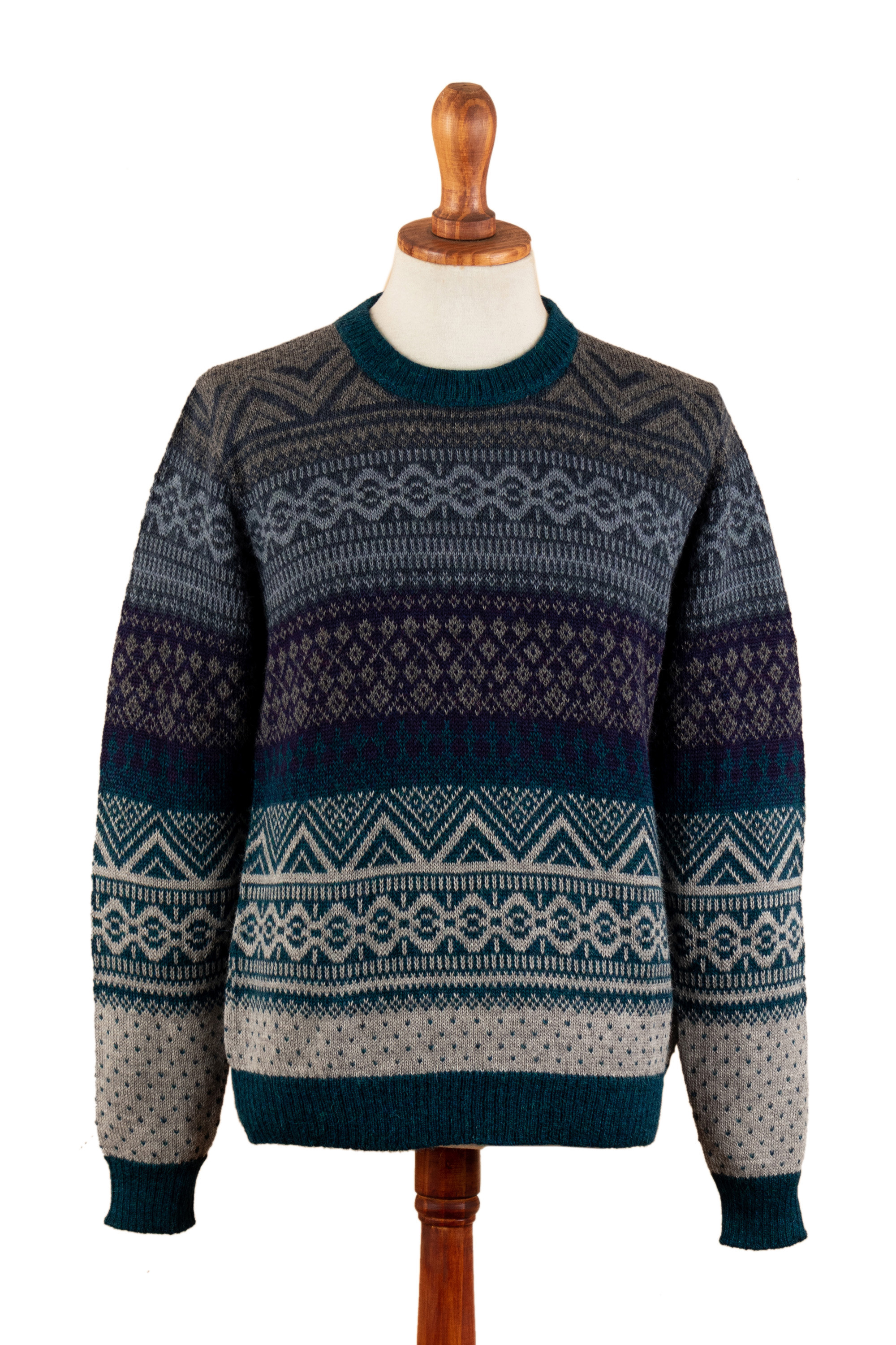 Men's Soft Teal and Blue 100% Alpaca Pullover from Peru, 'Teal Adventures'