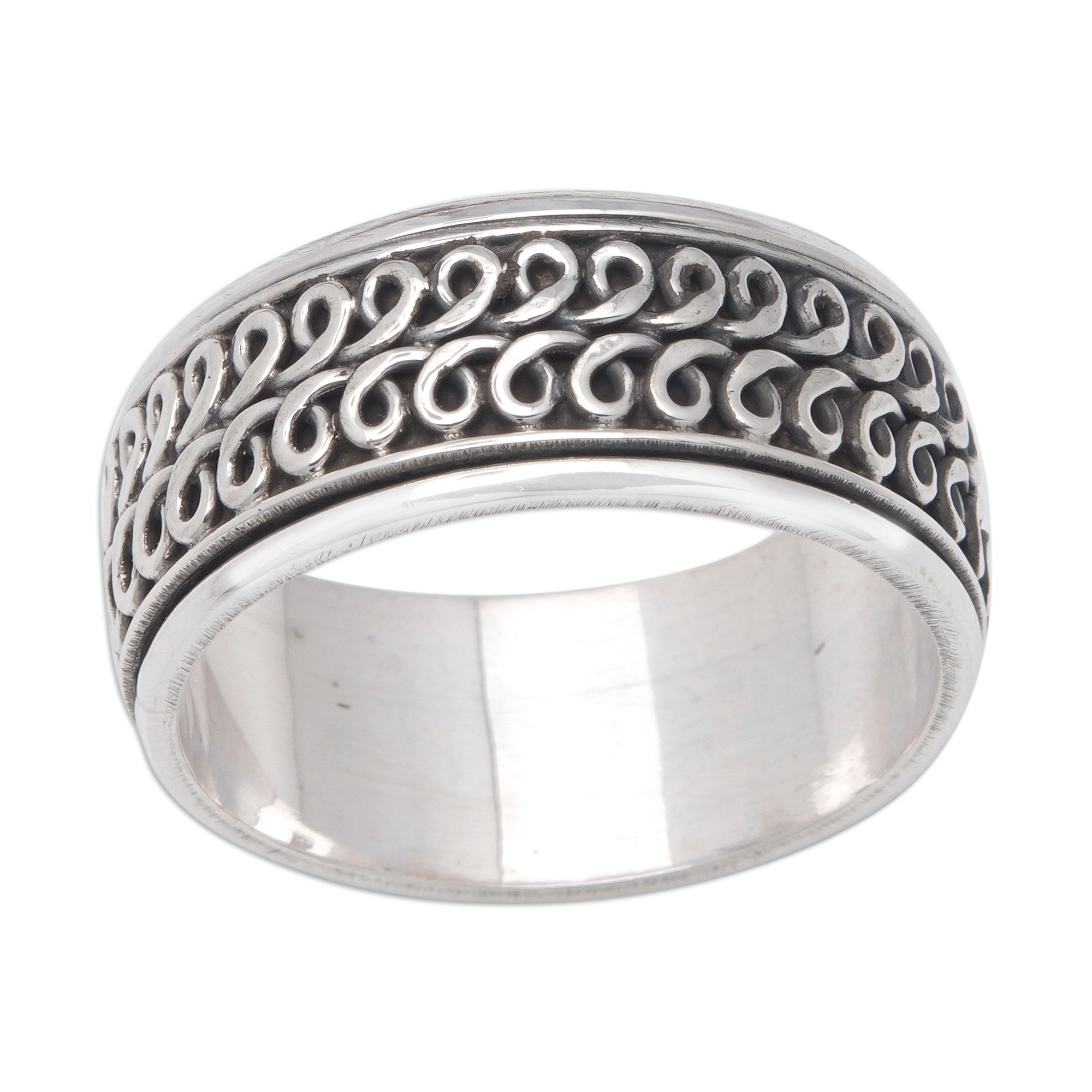 Men's Traditional Balinese Sterling Silver Band Ring, 'Tanah Lot Waves'