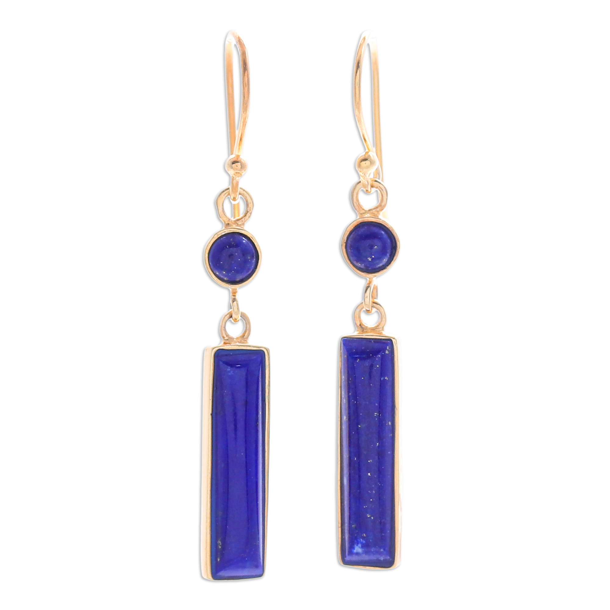 Modern 18k Gold-Plated Lapis Lazuli Bar Dangle Earrings, 'Vivid Magic'