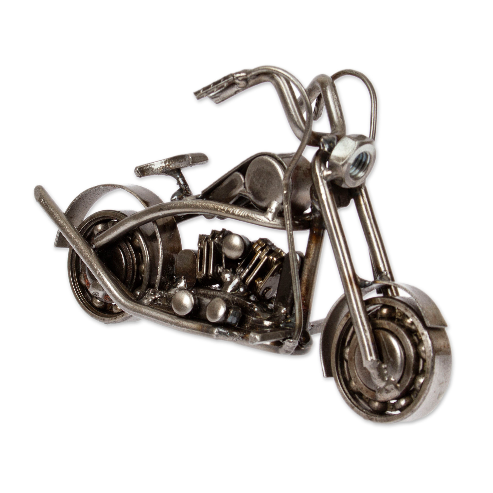 Motorcycle-Themed Eco-Friendly Recycled Metal Sculpture, 'Vintage Motorbike'