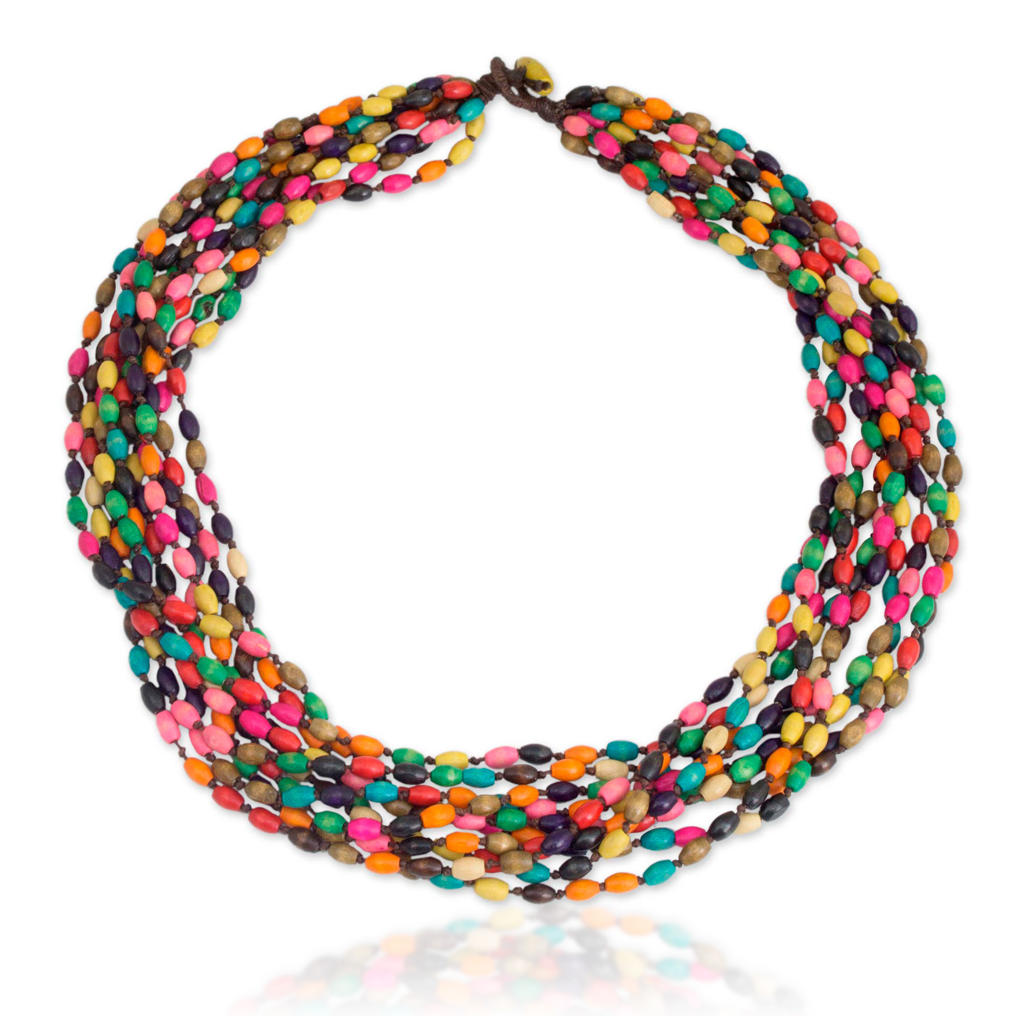 Multicolor Necklace Beaded Jewelry Knotted by Hand, 'Songkran Belle'